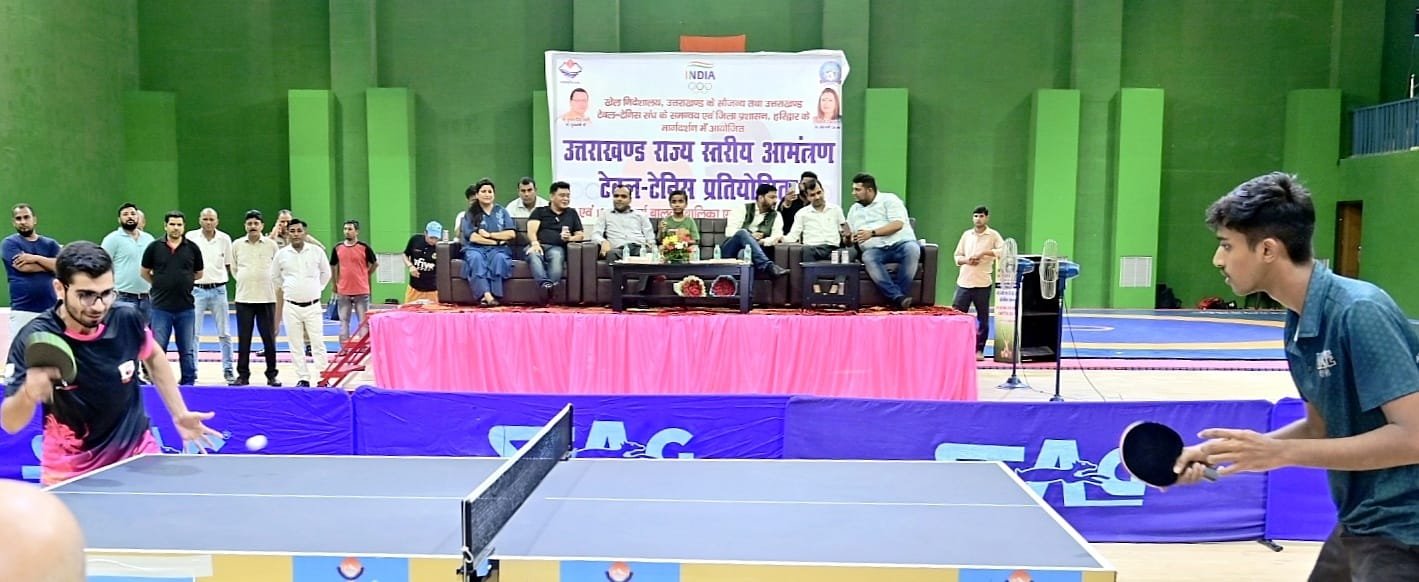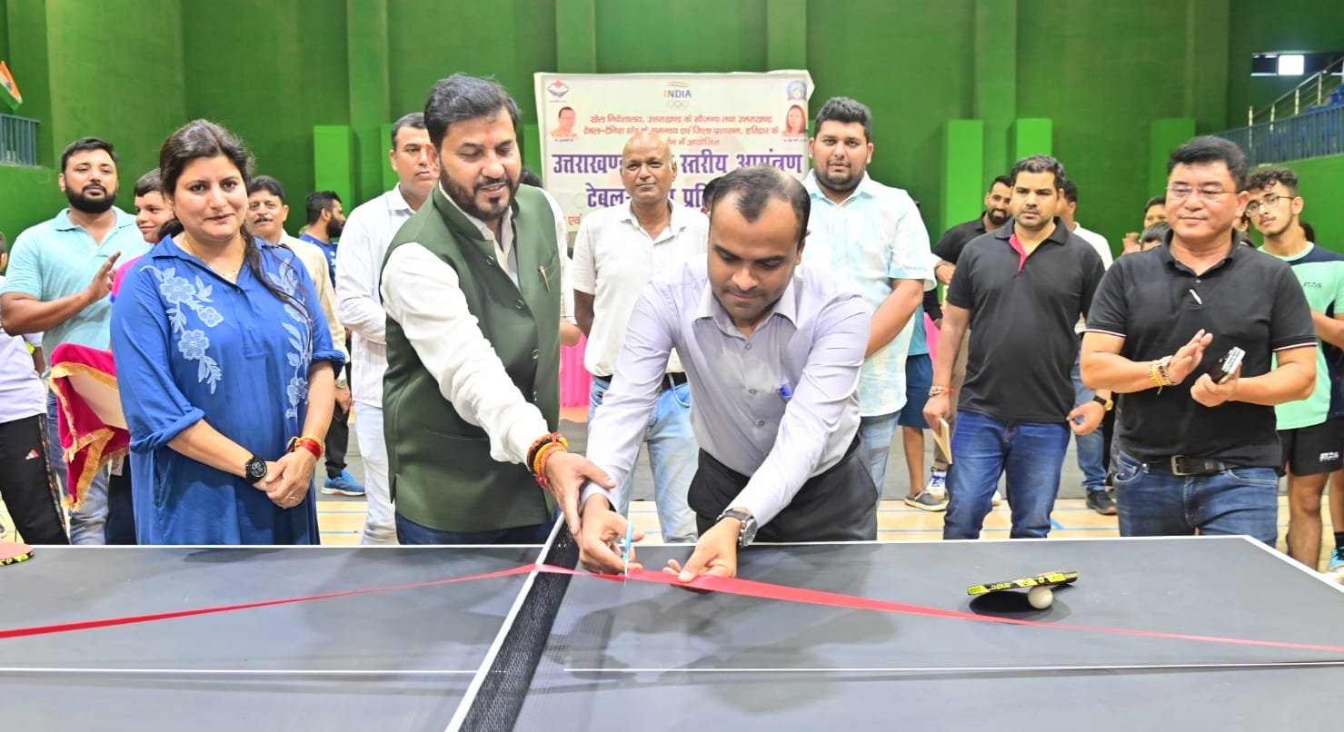 हरिद्वार : खेल निदेशालय उत्तराखण्ड के तत्वावधान एवं उत्तराखण्ड टेबल टेनिस संघ तथा जिला प्रशासन के मार्गदर्शन में जिला खेल कार्यालय, हरिद्वार द्वारा 17 एवं 19 वर्ष से कम आयु वर्ग के बालक एवं बालिकाओं तथा महिला एवं पुरुषों की ओपन राज्य स्तरीय आमंत्रण टेबल टेनिस प्रतियोगिता का आयोजन 20 अगस्त 2025 से योगस्थली खेल परिसर रोशनाबाद, हरिद्वार में किया गया। जिसका शुभारंभ जिलाधिकारी मयूर दीक्षित द्वारा रिबन काट किया गया । प्रतियोगिता में उत्तराखण्ड राज्य के 09 जनपदों की टीमे प्रतिभाग कर रही है। प्रतियोगिता में विभिन्न जनपदों से 102 बालक एवं 85 खिलाडियों द्वारा प्रतिभाग किया जा रहा है।