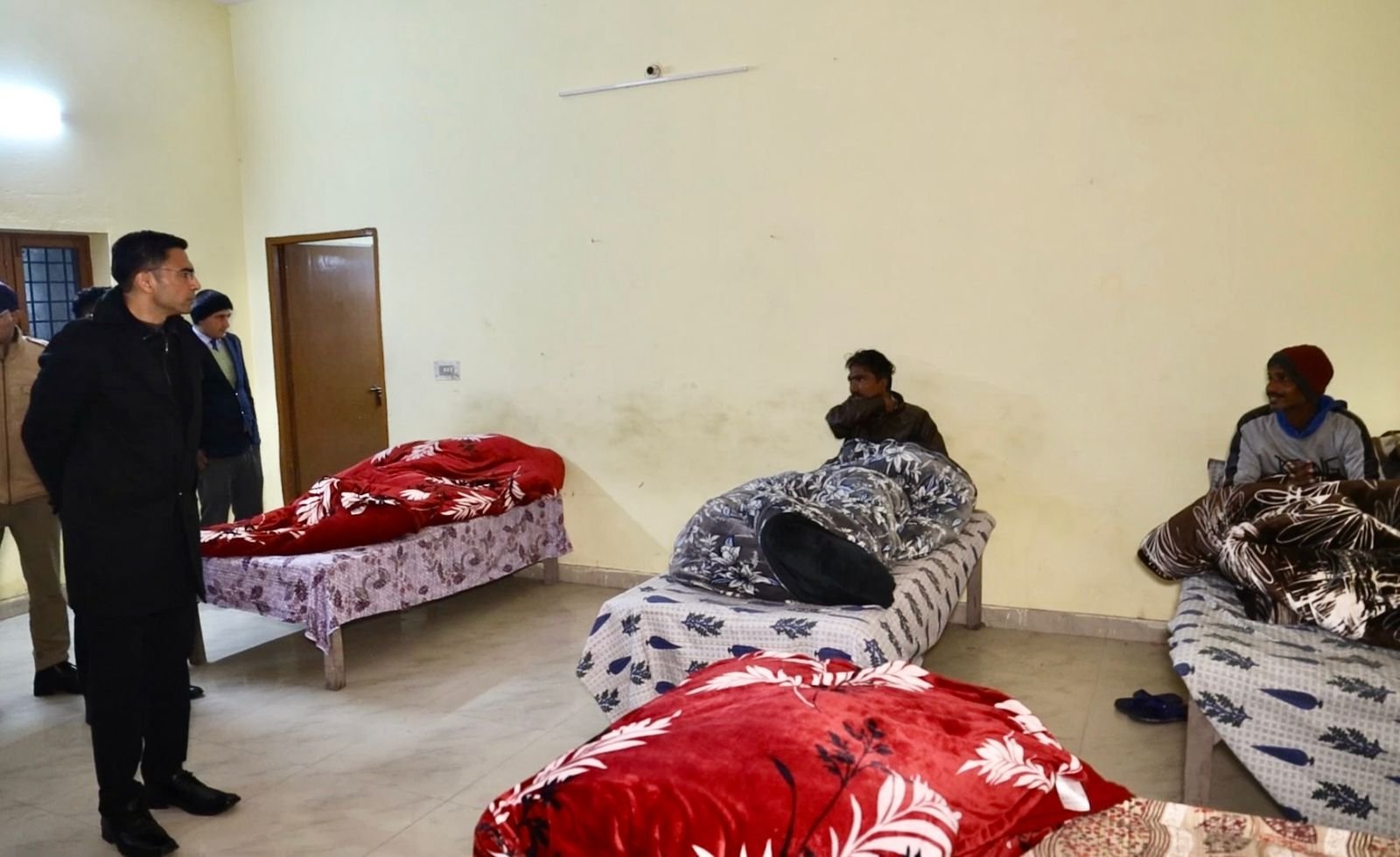जिलाधिकारी ने रैन बसेरा का निरीक्षण कर वहां ठहरे लोगों से बातचीत की तथा उनकी आवश्यकताओं की जानकारी ली। उन्होंने नगर निगम एवं तहसील प्रशासन के अधिकारियों को निर्देश दिए कि ठंड के मौसम में कोई भी जरूरतमंद व्यक्ति असुविधा का शिकार न हो, इसके लिए सभी आवश्यक व्यवस्थाएं सुनिश्चित की जाएं। सभी चौक चौराहो पर अलावा की समुचित व्यवस्था सुनिश्चित करते हुए इसकी दैनिक सूचना उपलब्ध कराना सुनिश्चित करें।
