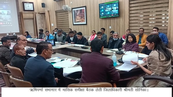 देहरादून : जिलाधिकारी सोनिका की अध्यक्षता में ऋषिपर्णा सभागार कलेक्ट्रेट में स्टाॅफ की बैठक लेते हुए संबंधित अधिकारियों को आवश्यक दिशा-निर्देश दिए। जिलाधिकारी ने उपजिलाधिकारी कोर्ट तथा तहसीलदार कोर्ट में लंबित वादों एवं राजस्व वसूली की समीक्षा करते हुए कार्याें में तेजी लाने के निर्देश दिए।