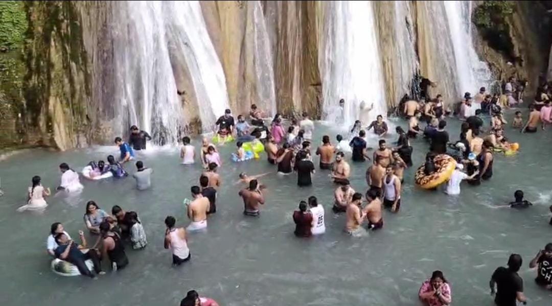 टिहरी : चारधाम यात्रा के दो धाम यमुनोत्री और गंगोत्री से वापस लौट रहे यात्री जनपद टिहरी गढ़वाल के प्रसिद्ध पर्यटक स्थल केम्प्टी वॉटरफॉल के ठंडे पानी में डुबकी लगाकर अपनी यात्रा की थकान को मिटा रहे हैं। साथ ही अन्य राज्यों से गर्मियों की छुट्टियां बिताने मसूरी पहुंचे रहे पर्यटक भी केंपटी वॉटर फॉल का आनंद ले रहे हैं। बीते शनिवार को बड़ी संख्या में यात्री एवं पर्यटक केम्प्टी वॉटरफॉल पहुंचे। जहां ऊंची पहाड़ी से गिर रहे पानी के झरने को देखकर पर्यटक काफी उत्साहित नजर आ रहे हैं, वहीं केम्प्टी वॉटरफॉल का आनंद लेकर कई पर्यटक यहां के स्थानीय पहाड़ी फल आड़ू, चुलु, पुलम, मक्की के भुट्टे का भी खूब आनंद ले रहे हैं। महाराष्ट्र के नासिक डिस्ट्रिक्ट से पहुंचे नंद कुमार वाग ने बताया कि केम्प्टी वाटरफॉल का दृश्य हमें बहुत ही पसंद आया है। उन्होंने बताया कि झरने तक पहुंचाने की व्यवस्था बहुत ही अच्छे ढंग से व्यवस्थित तरीके से चल रही है। साथियों ने बताया कि यहां के पहाड़ी व्यंजनों का स्वाद वाकई में स्वादिष्ट है और पौष्टिक भी है।