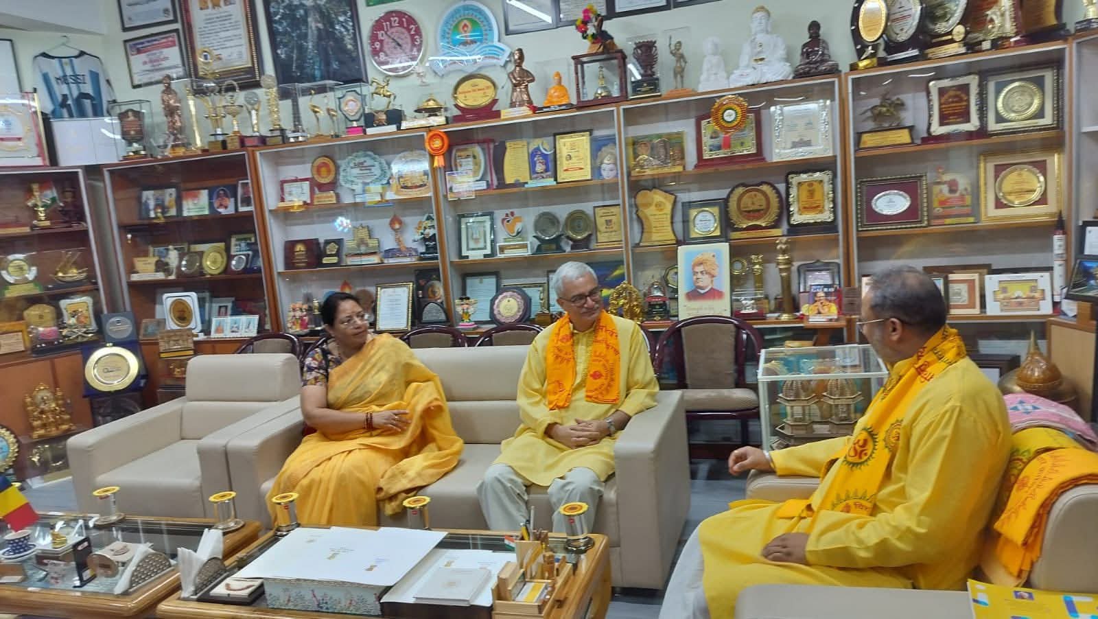 युवा आइकॉन डॉ चिन्मय पण्ड्या और डॉ विवेक जोशी के बीच विभिन्न विषयों पर संवाद हुआ। डॉ जोशी ने विश्वविद्यालय की प्राकृतिक छटा और शांत वातावरण की प्रशंसा करते हुए कहा कि ऐसी संस्थाएं देश के लिए प्रेरणास्त्रोत हैं। उन्होंने युवाओं को राष्ट्र सेवा के लिए प्रेरित करने में देसंविवि की भूमिका को सराहा। युवा आइकॉन डॉ पण्ड्या ने भी निर्वाचन आयुक्त डॉ जोशी को युगऋषि पं. श्रीराम शर्मा आचार्य के विचारों और देसंविवि की स्थापना के उद्देश्यों से अवगत कराया और युगऋषि रचित युगसाहित्य आदि भेंटकर सम्मानित किया। पूज्य गुरुदेव की प्रेरणा से संचालित यह अभियान जनजागरण, चरित्र निर्माण एवं युग निर्माण की दिशा में एक महत्त्वपूर्ण प्रकाशपुंज के रूप में कार्य कर रहा है ।