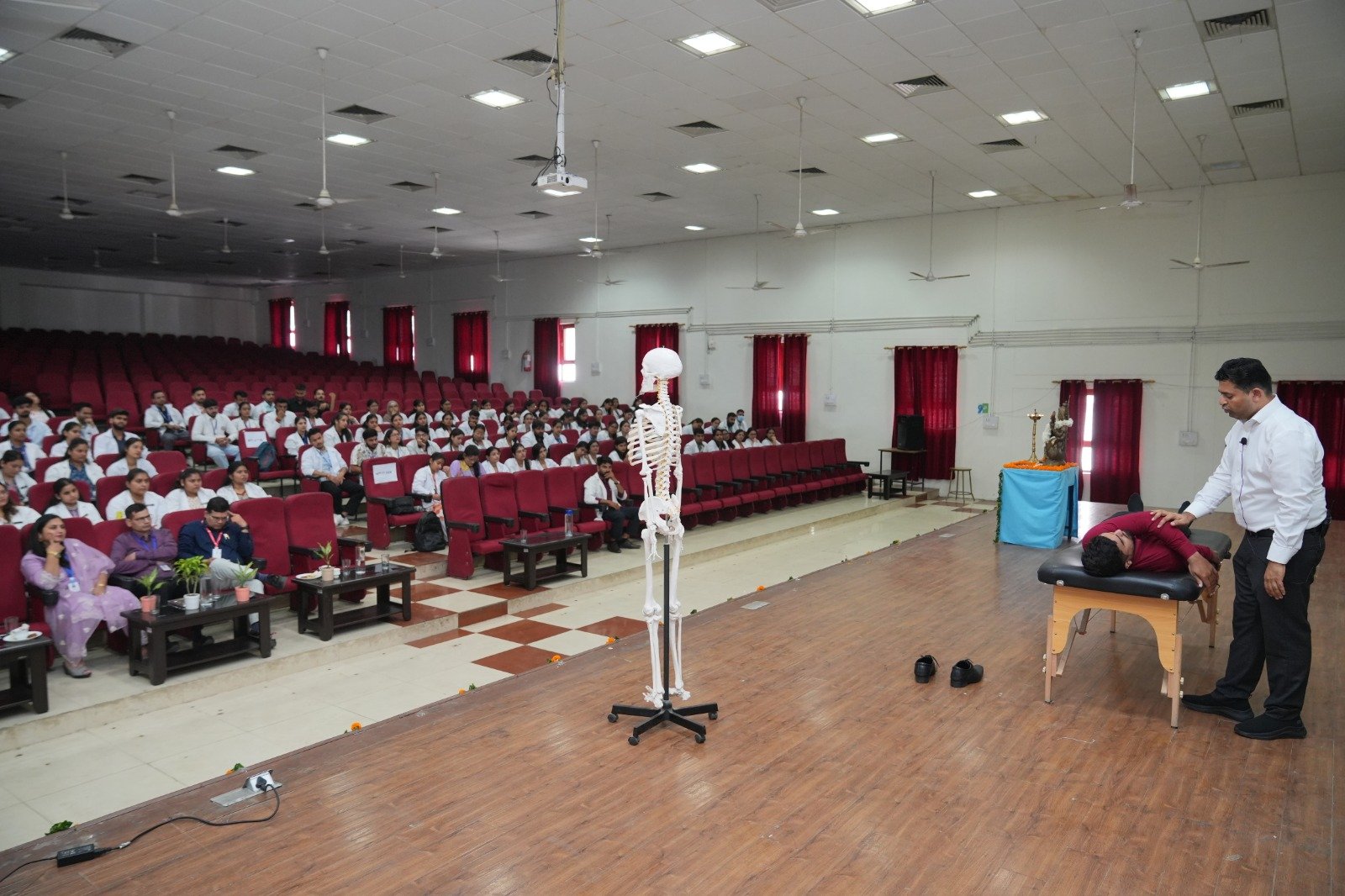 उन्होंने अपने वक्तव्य में बताया कि किस प्रकार फिजियोथेरेपी द्वारा कंधे का दर्द (फ्रोजन शोल्डर, रोटेटर कफ इंजरी), गर्दन का दर्द, सर्वाइकल स्पोंडलाइटिस, मसल स्पास्म, कमर दर्द, लंबर पेन, साइटिका तथा घुटने की समस्याएं जैसी जटिल बीमारियों का प्रभारी उपचार सम्भव है। उन्होंने लाइव डेमो के माध्यम से मैनुअल थेरेपी, मोबिलाइजेशन तकनीक और स्ट्रेचिंग एक्सरसाइसाइज की बारीकियों को भी समझाया। उन्होंने अपना अनुभव सांझा करते हुए कहा कि नियमित फिजियोथेरेपी न केवल दर्द को कम करती है, बल्कि रोगी को दीर्घकालीन आराम और सक्रिय जीवनशैली की ओर अग्रसर करती है। प्रो. डाॅ. नीरज कुमार ने धन्यवाद ज्ञापित किया। कार्यक्रम को सफल बनाने में डाॅ शमा परवीन, डाॅ संदीप कुमार, डाॅ तबस्सुम, डाॅ सुरभि, डाॅ रविन्द्र, डाॅ अकांक्षा, डाॅ अभिषेक, डाॅ सुषांत, डाॅ विशाल डाॅ जयदेव का विशेष सहयोग रहा।