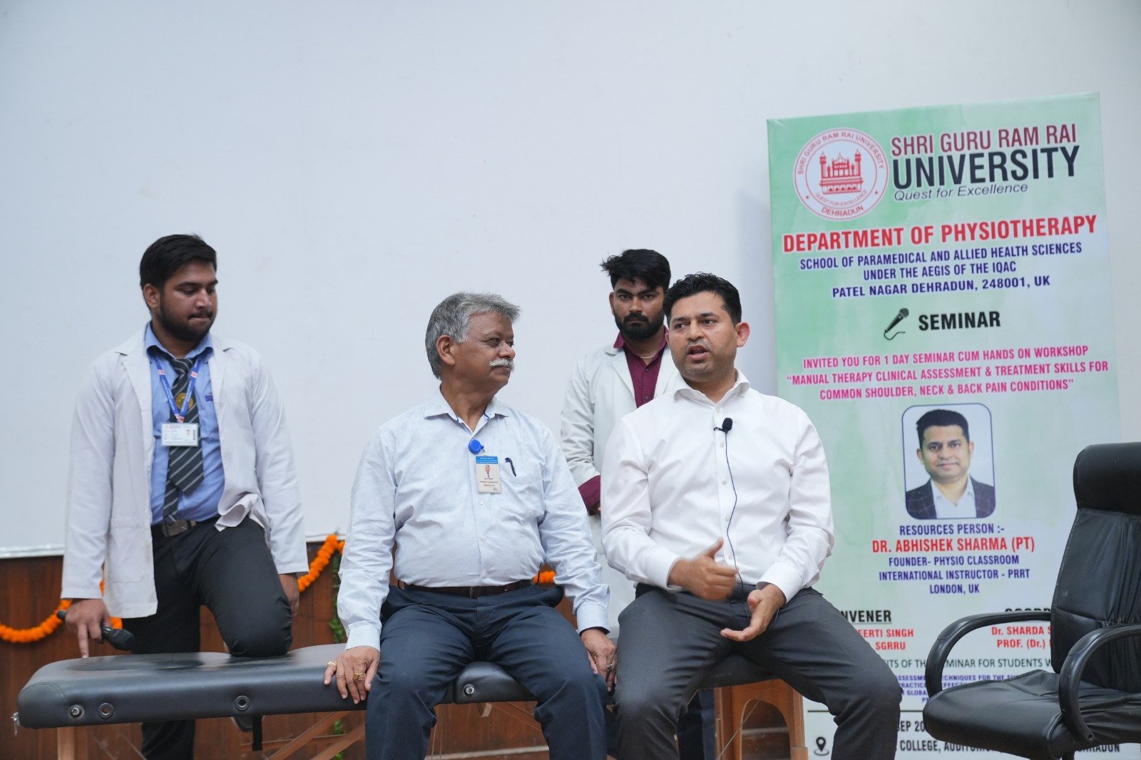 कार्यक्रम के मुख्य वक्ता डाॅ. अभिषेक शर्मा, रिसोर्स पर्सन, फाउंडर फिजियोक्लासरूम, अन्तर्राष्ट्रीय इंस्ट्रक्टर पीआरआरटी लंदन यूनाइटेड किंगडन ने महत्वपूर्णं जानकारियां सांझा कीं। डॉ. अभिषेक शर्मा एक अनुभवी मस्कुलोस्केलेटल एवं न्यूरो फिजियोथेरेपिस्ट हैं, जिन्हें इस क्षेत्र में 18 वर्षों से अधिक का समृद्ध अनुभव प्राप्त है। वर्तमान में वे लंदन में एनएचएस के साथ बैंड 7 एमएसके क्लिनिशियन एवं एफसीपी के रूप में सेवाएँ दे रहे हैं। वे 700 से अधिक शैक्षणिक वीडियो वाले वैश्विक शिक्षा मंच फिजियो क्लासरूम के संस्थापक हैं। अंतर्राष्ट्रीय पीआरआरटी प्रशिक्षक के रूप में उन्होंने दुनिया भर के फिजियोथेरेपिस्टों को दर्द प्रबंधन, मैनुअल थेरेपी और उन्नत नैदानिक तर्क की तकनीकों में प्रशिक्षित किया है।