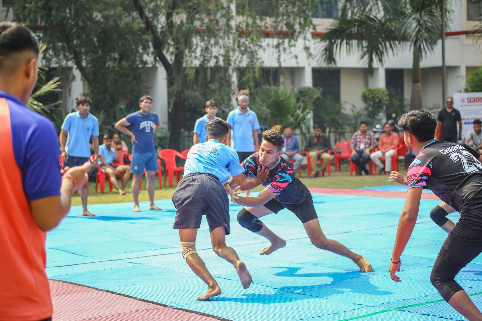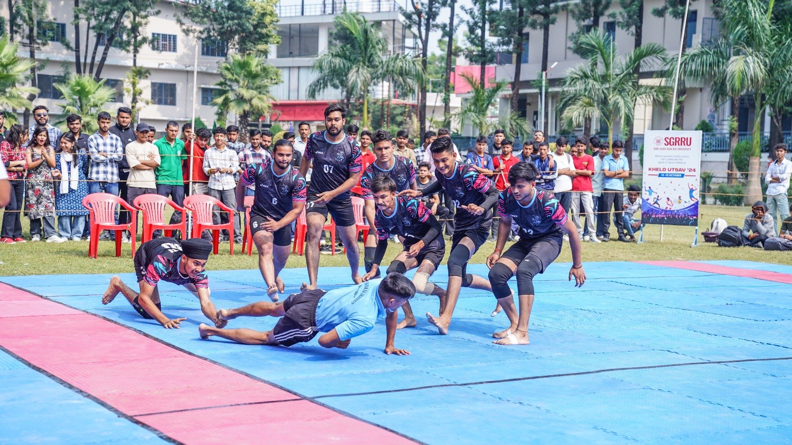 देहरादून। श्री गुरु राम राय विश्वविद्यालय (एसजीआरआरयू) की वार्षिक खेलकूद प्रतियोगिता खेलोत्सव का पाॅचवा दिन फुटबाॅल, कबड्डी, खो-खो, डिस्कस थ्रो, भाला फेंक, गोला फेंक, लंबी कूद, ट्रिपल जंप एवम् क्रिकेट प्रतियोगिताओं के नाम रहा। स्कूल ऑफ ह्यूमैनिटीज ने रोमांचक मुकाबले में फुटबाल का फाइनल जीता।  शुक्रवार को श्री गुरु राम राय विश्वविद्यालय के अलग-अलग खेल मैदानों पर चौथे दिन की प्रतियोगिताओं का शुभारंभ डॉ. अजय कुमार खण्डूड़ी, कुलसचिव एसजीआरआर विश्वविद्यालय, डॉ. आर.पी.सिंह, समन्वयक एसजीआरआरयू, खेलोत्सव के सचिव सत्य प्रकाश जोशी, डॉ. पुनीत ओहरी, डॉ. दीपक सोम, डॉ. वैभव शर्मा ने संयुक्त रूप से किया।