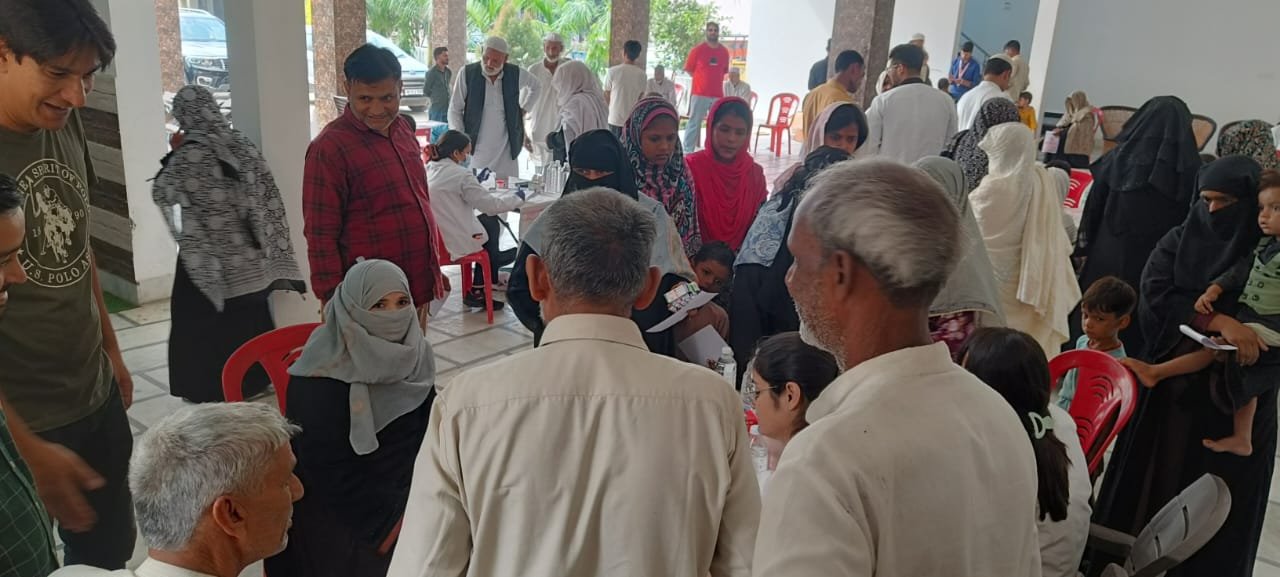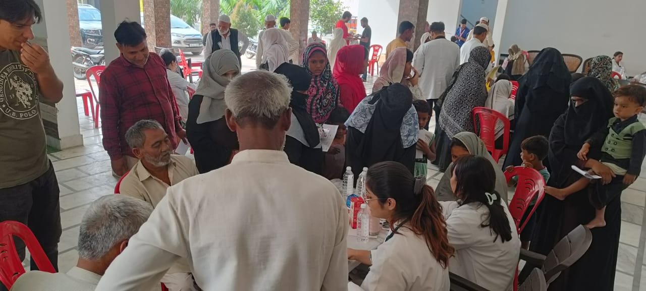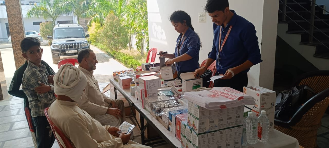 श्री महंत इन्दिरेश अस्पताल की ओर से निःशुल्क जांचें की गईं और फ्री दवाईयां भी बांटी गई
