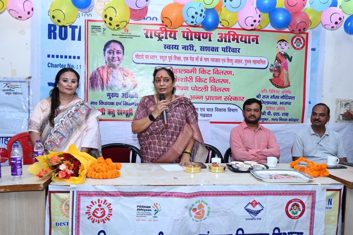 कोटद्वार : विधानसभा अध्यक्ष उत्तराखंड एवं कोटद्वार विधायक ऋतु खण्डूडी भूषण ने आज नजीबाबाद रोड स्थित डिफेंस कॉलोनी के रोटरी क्लब सभागार में महिला सशक्तिकरण एवं बाल विकास विभाग, पौड़ी गढ़वाल द्वारा आयोजित “स्वस्थ नारी, सशक्त परिवार” कार्यक्रम में मुख्य अतिथि के रूप में प्रतिभाग किया।