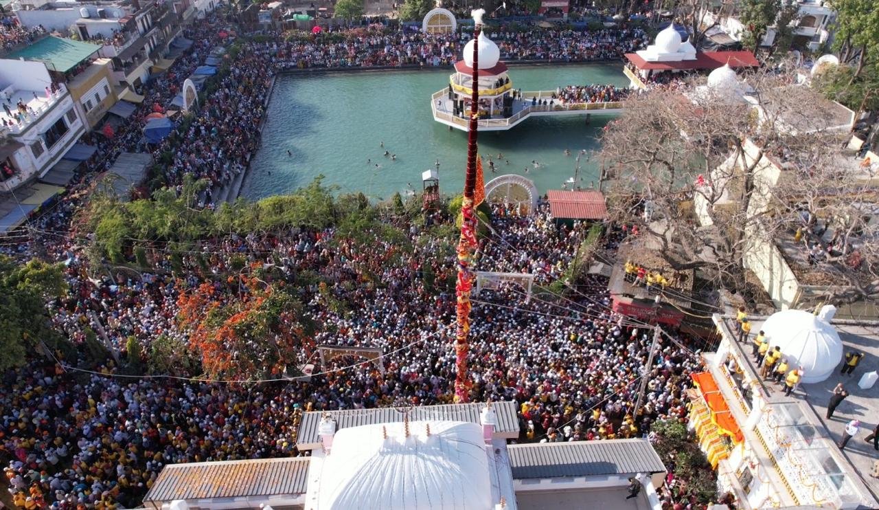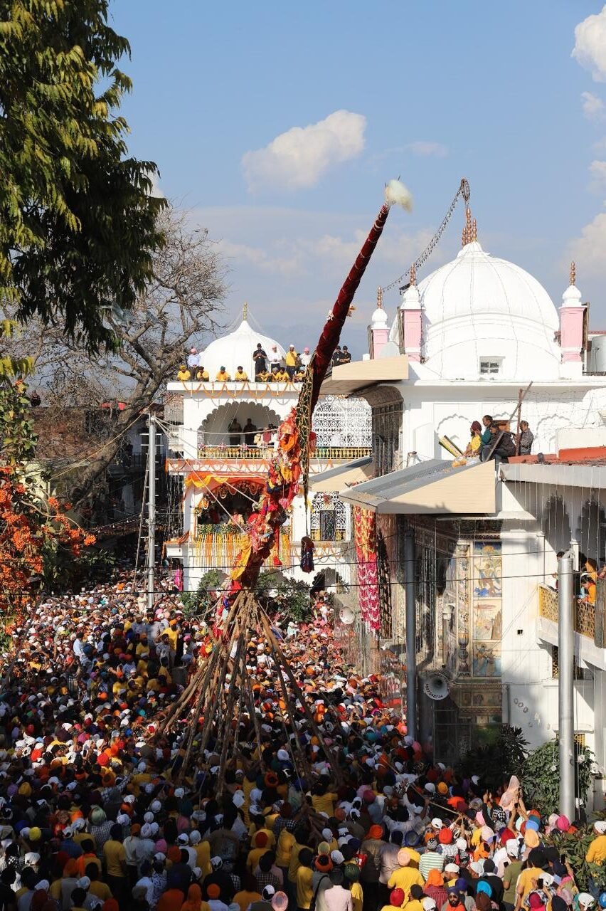 देहरादून। खुशियां नाल मनाईये जन्मदिन सद्गुरु दा…….. देखो देखों गुरां दा देखों झण्डा चढ़या….. , श्री गुरु राम राय जी महाराज व श्रीमहंत देवेन्द्र दास जी महाराज के जयकारों के साथ बुधवार को श्री झण्डा साहिब का आरोहण किया गया। आस्था के महाकुंभ का साक्षी बनने के लिए श्री दरबार साहिब में बुधवार को श्रद्धालुओं का जनसैलाब उमड़ पड़ा। लाखों संगतें व दूनवासी श्री झण्डे जी के सम्मुख श्रद्धा के साथ शीश नवाए व हाथ जोड़े खड़े रहे। हर कोई श्री झण्डा साहिब के समक्ष मत्था टेकने और श्री गुरु राम राय जी महाराज के दर्शन को श्रद्धापूर्वक भावविभोर रहा। श्री दरबार साहिब परिसर व आसपास के क्षेत्रों में तिल रखने भर की भी जगह नहीं थी। जैसे-जैसे श्री झण्डे जी पर गिलाफ के आवरण चढ़ाने का क्रम बढ़ता जाता, संगतों व दूनवासियों का उत्साह भी पराकाष्ठा तक पहुंचता जाता। दर्शनी गिलाफ के चढ़ते ही व श्री झण्डे जी के आरोहण की प्रक्रिया प्रारम्भ होते ही श्री गुरु राम राय जी महाराज के जयकारों की ध्वनि तेज हो उठी। बुधवार शाम 3ः50 मिनट पर जैसे ही श्री दरबार साहिब देहरादून के सज्जादे गद्दी नशीन श्रीमहंत देवेन्द्र दास जी महाराज ने आरोहण की प्रक्रिया शुरू करने का संदेश दिया, वैसे ही पूरी द्रोणनगरी श्री गुरु राम राय जी महाराज के जयकारों से गूंज उठी। 4 बजकर 19 मिनट पर श्री झण्डे जी का आरोहण पूर्णं हुआ। संगतों व दूनवासियों ने श्री गुरु राम राय जी महाराज के जयकारे लगाए व ढोल की थाप पर जमकर नृत्य किया। इसी के साथ देहरादून के ऐतिहासिक एवम् सांस्कृतिक विरासत श्री झण्डे जी मेले का विधिवत शुभारंभ हो गया।