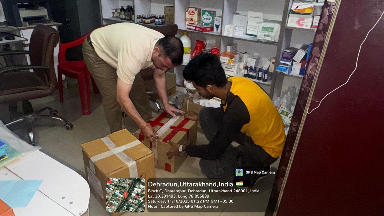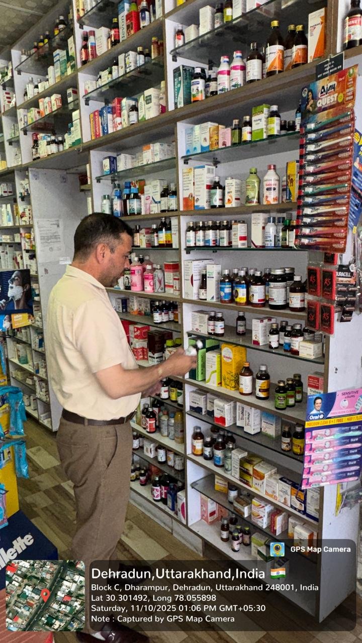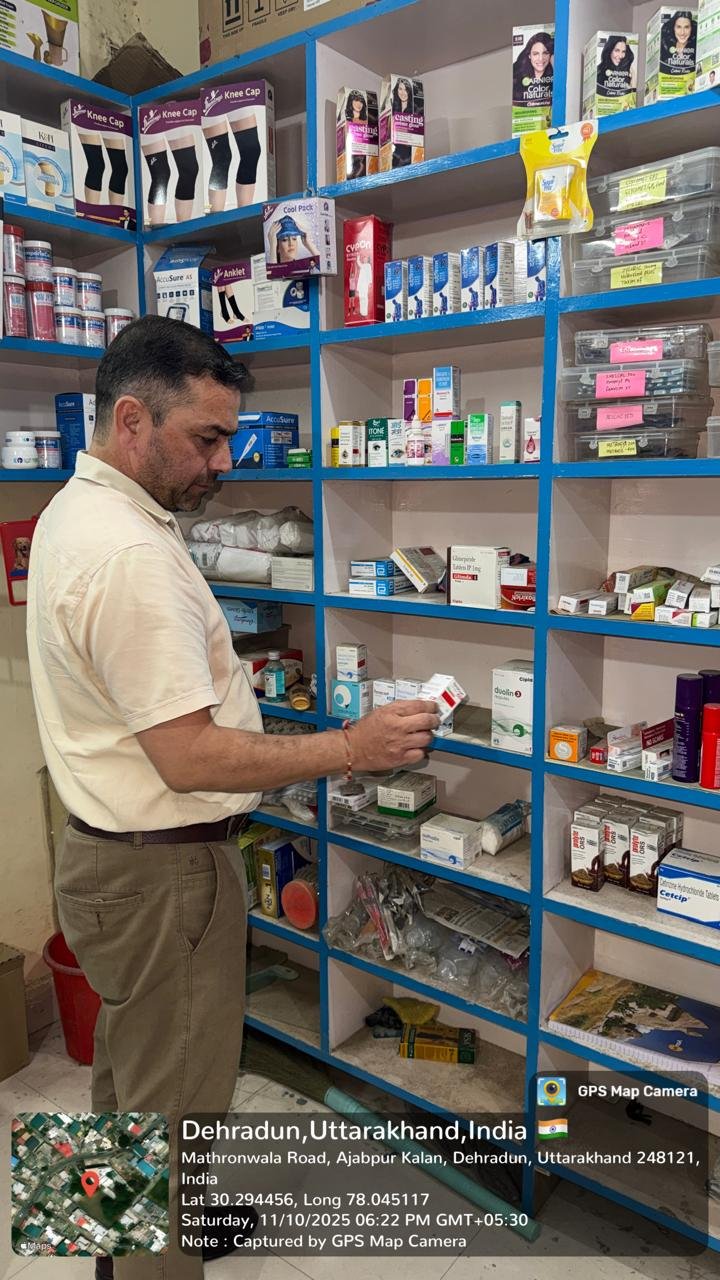 औषधि निरीक्षक (FDA) देहरादून मानेंद्र सिंह राणा के नेतृत्व में टीम ने पलटन बाजार, घंटाघर, राजकीय एस.पी.एस. चिकित्सालय देहरादून रोड, ऋषिकेश, जॉलीग्रांट, अजबपुर और नेहरू कॉलोनी क्षेत्र में स्थित विभिन्न मेडिकल स्टोरों और थोक विक्रेता फर्मों का औचक निरीक्षण किया। निरीक्षण के दौरान टीम ने पाया कि कुछ प्रतिष्ठानों में बच्चों को खांसी व सर्दी-जुकाम में दी जाने वाली प्रतिबंधित दवाएं (सिरप) अलग करके भंडारित की गई थीं। टीम ने मौके पर ही इन दवाओं को सील कर दिया और संबंधित विक्रेताओं को अग्रिम आदेशों तक विक्रय बंद करने के सख्त निर्देश दिए।
