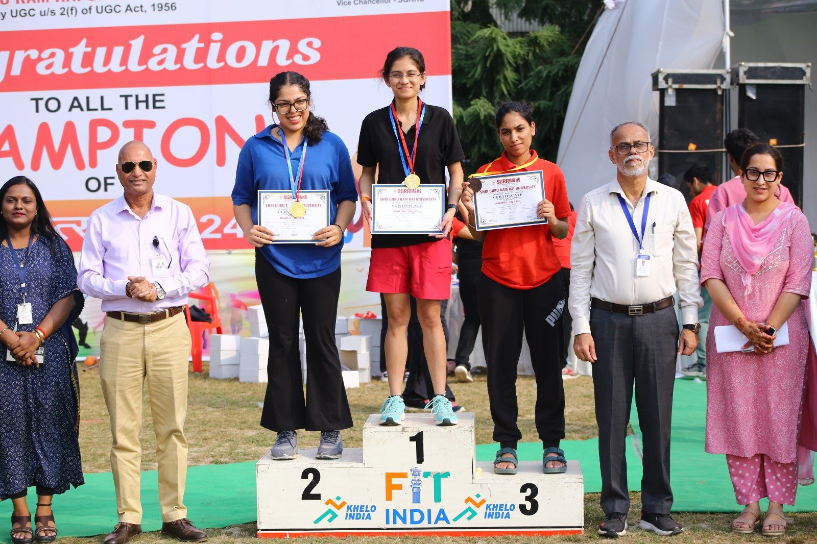 देहरादून। श्री गुरु राम राय इंस्टीट्यूट ऑफ मेडिकल एण्ड हैल्थ साइंसेज़ (एसजीआरआर आईएमएण्डएचएस) की वार्षिक खेलकूद प्रतियोगिता एथलीटिका का मंगलवार को समापन हो गया। दो दिवसीय एथलीटिका के अंतिम दिन विजेता खिलाडियों को ट्राॅफी, पुरस्कार एवं प्रशस्ति पत्र देकर सम्मानित किया गया। एथलीटिका-2024 में सर्वश्रेष्ठ प्रदर्शन करने पर एमबीबीएस 2020 बैच ओवरऑल चैम्पियन रहा। बालक वर्ग में आयुष उनियाल एमबीबीएस 2020 बैच को ओवरऑल एथलीट ऑफ दि इयर के सम्मान से नवाजा गया। बालिका वर्ग में धृति देउपा एमबीबीएस 2020 बैच को ओवरऑल एथलीट ऑफ दि इयर के सम्मान से नवाजा गया।