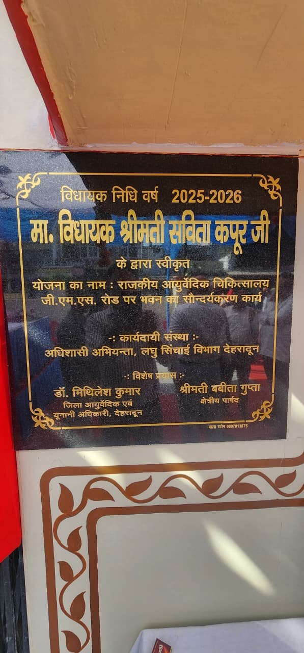 विधायक सविता कपूर ने किया राजकीय आयुर्वेदिक चिकित्सालय निरंजनपुर के सौंदर्यकृत भवन का लोकार्पण