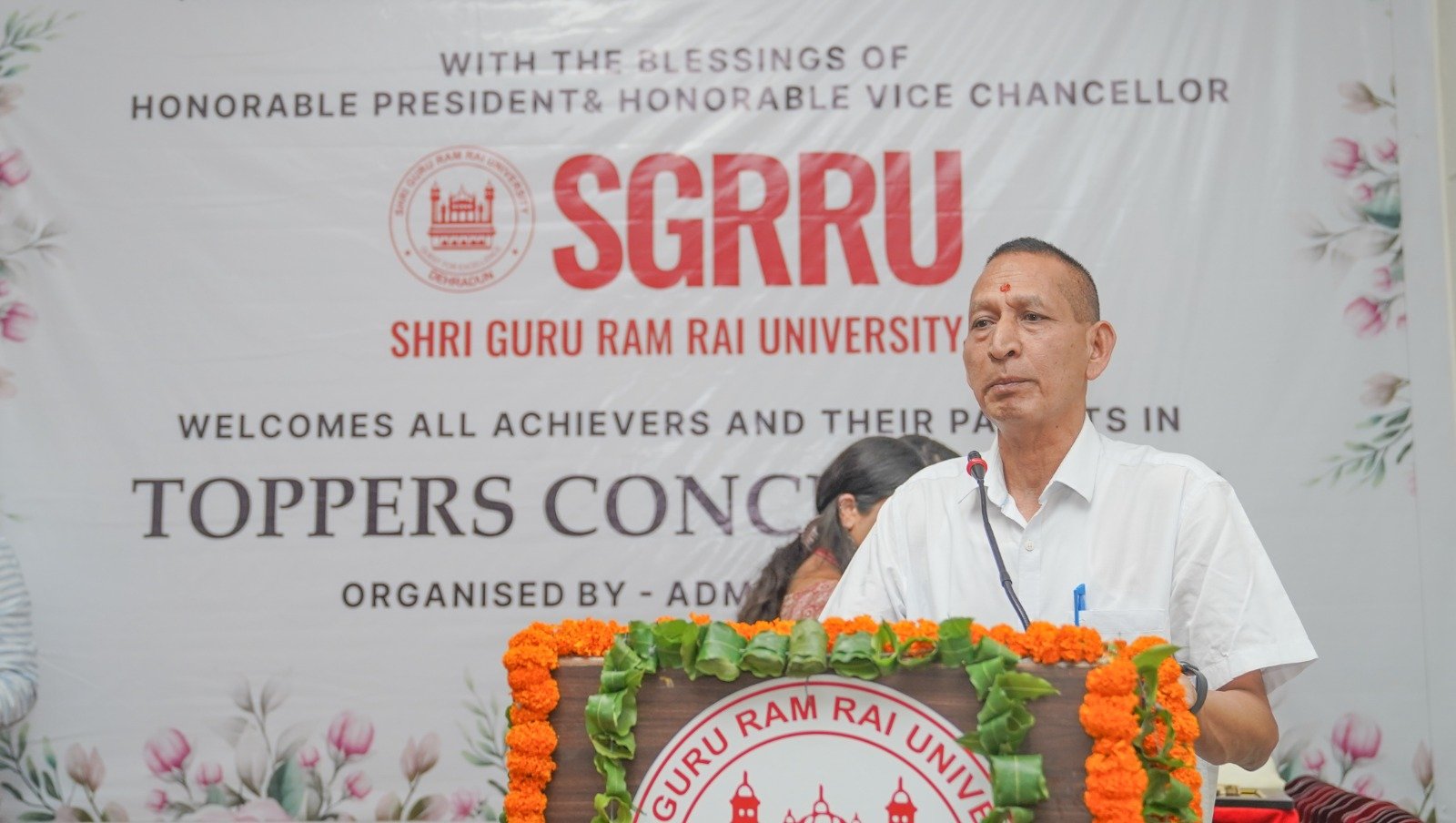 देहरादून।  एसजीआरआरयू के द्वारा रविवार को टाॅपर्स काॅन्क्लेव का आयोजन किया गया। श्री गुरु राम राय विश्वविद्यालय (एसजीआरआरयू) ने बारहवीं के परीक्षा परिणामों में उत्कृष्ट प्रदर्शन करने वाले 100 से अधिक होनहार छात्र-छात्राओं को सम्मानित कर उनकी हौंसलाफजाई की। अपने अभिभावकों के साथ आए छात्र-छात्राओं ने सम्मान मिलने के बाद गर्व से अनुभव सांझा किए। एसजीआरआर एजुकेशन मिशन के स्कूलों की विभिन्न शाखाओं, केन्द्रीय विद्यालय व अन्य स्कूलों से टाॅपर्स अपने अभिभावकों के साथ काॅन्क्लेव में पहुंचे। श्री गुरु राम राय एजुकेशन मिशन के चेयरमैन श्रीमहंत देवेन्द्र दास जी महाराज ने सभी टाॅपर्स को शुभकामनाएं प्रेषित कीं।