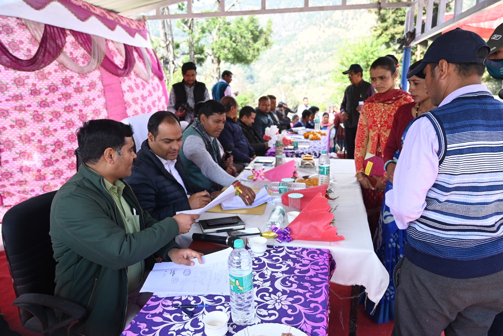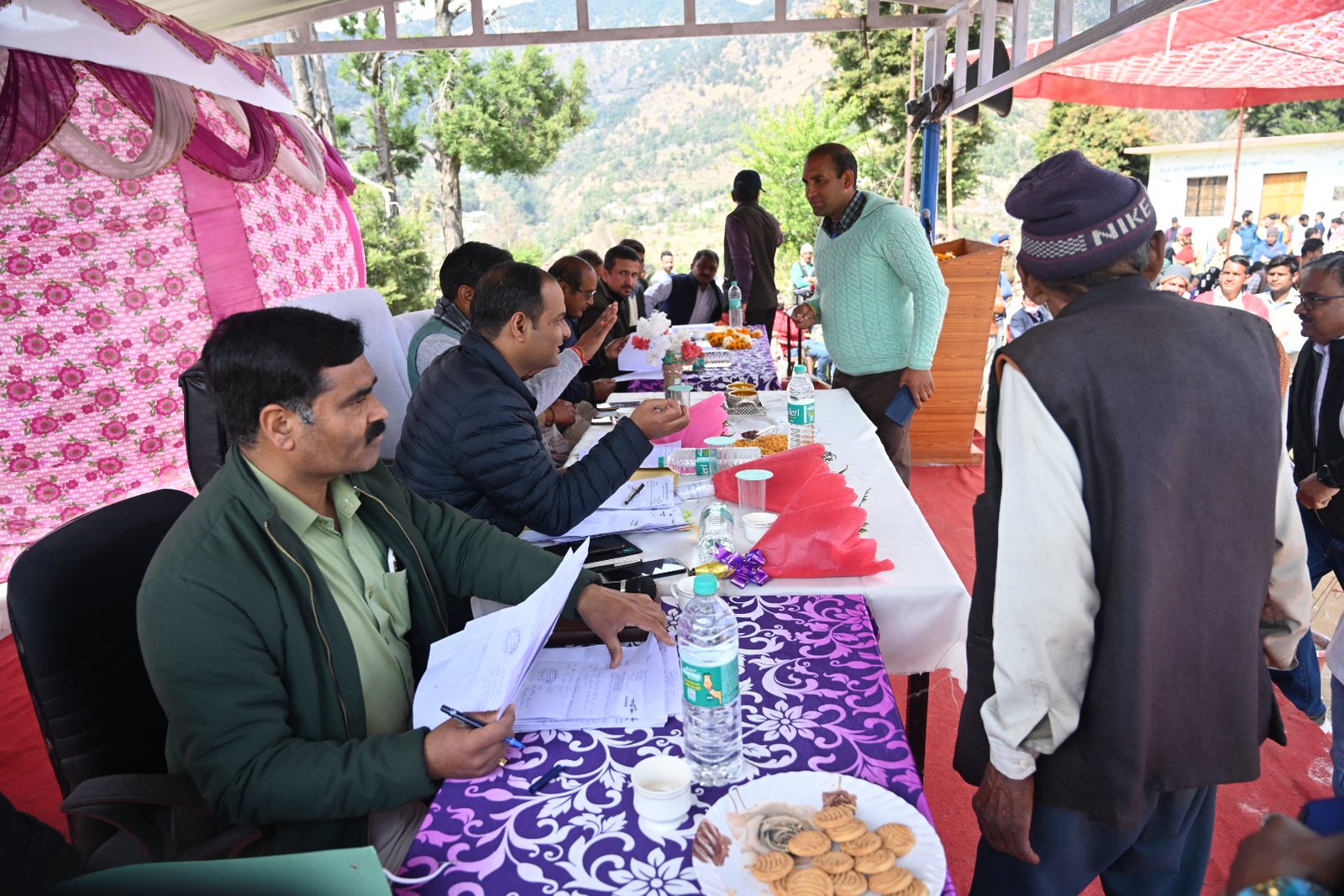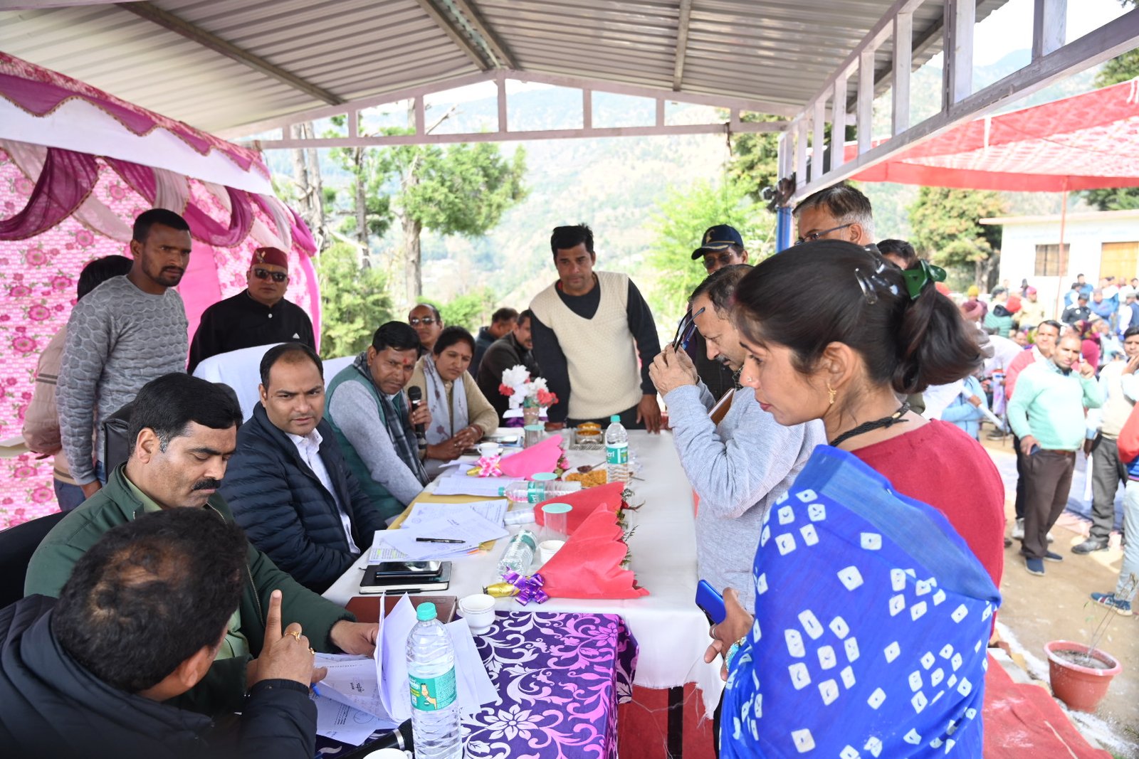 इस मौके पर प्रधान ग्राम पंचायत बडियार हिंदाव राधिका देवी ने विकासखंड भिलंगना के पट्टी हिंदाव में आधार सेवा केंद्र खोलने का अनुरोध किया गया, इस पर मुख्य विकास अधिकारी द्वारा ई-डिस्ट्रिक्ट मैनेजर को प्रकरण पर वांछित कार्रवाई कर मथकुड़ी में 15 दिन का शिविर प्रस्तावित करने तथा आख्या उपलब्ध कराने के निर्देश दिए गए। सदस्य वार्ड संख्या 9 केसरी देवी द्वारा ग्राम पंचायत बडियार के अनुसूचित बस्ती वार्ड 8 व 9 परिवारों के समस्त परिवारों को 1986 से जो वन भूमि मथकुड़ी सैंण में बसे हैं, के विनियमितीकरण किए जाने एवं विकास निधियों से विकास कार्य को किए जाने की स्वीकृति का अनुरोध किया गया, इस पर रेंजर भिलंगना को 15 दिन के अंतर्गत कार्यवाही कर अवगत कराने के निर्देश दिए गए। प्रधान ग्राम पंचायत भोना मान सिंह रावत द्वारा रा.उ.माध्यमिक विद्यालय धमातोली में शिक्षकों की नियुक्ति करने का अनुरोध किया गया, इस पर मुख्य शिक्षा अधिकारी को नियमानुसार आवश्यक कार्यवाही कर अवगत कराने के निर्देश दिए गए। शिविर में लेनी गाड़ से कुंड लेनी तक सिंचाई गूल मरम्मत, विकास खंड भिलंगना के अंतर्गत जगदी बडियारगांव तितराना थार्तों मोटर मार्ग समरेखण हेतु वन विभाग एवं लोक निर्माण विभाग को संयुक्त निरीक्षण हेतु निर्देशित करने सहित पेयजल, विद्युत, स्वास्थ्य, सड़क, शिक्षा, वन, कृषि आदि विभागों की शिकायतें दर्ज की गई।