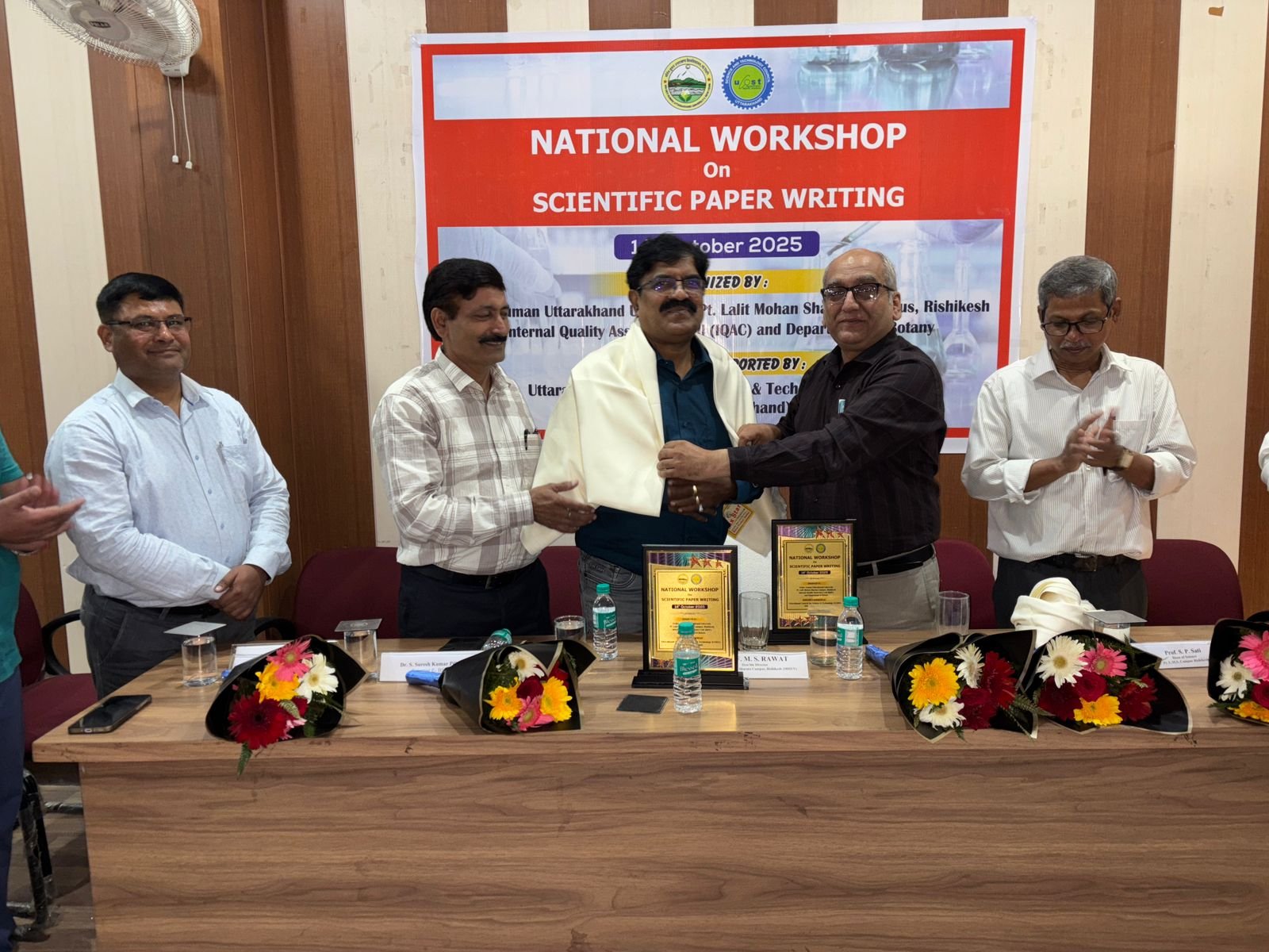 ऋषिकेश : उत्तराखंड राज्य विज्ञान एवं प्रौद्योगिकी परिषद (यूकास्ट) के तत्वावधान में आज 14 अगस्त 2025 को पंडित ललित मोहन शर्मा श्रीदेव सुमन उत्तराखंड विश्वविद्यालय परिसर ऋषिकेश में आंतरिक गुणवत्ता आश्वासन प्रकोष्ठ व वनस्पति विज्ञान के द्वारा “वैज्ञानिक शोध पत्र लेखन” विषय पर एकदिवसीय राष्ट्रीय कार्यशाला का आयोजन किया गया। इसका मुख्य उद्देश्य वैज्ञानिक पत्र लेखन विषय पर शोधकर्ताओं व छात्रों की रुचि को बढ़ावा देकर उनके वैज्ञानिक विचारों को प्रोत्साहित करना था।