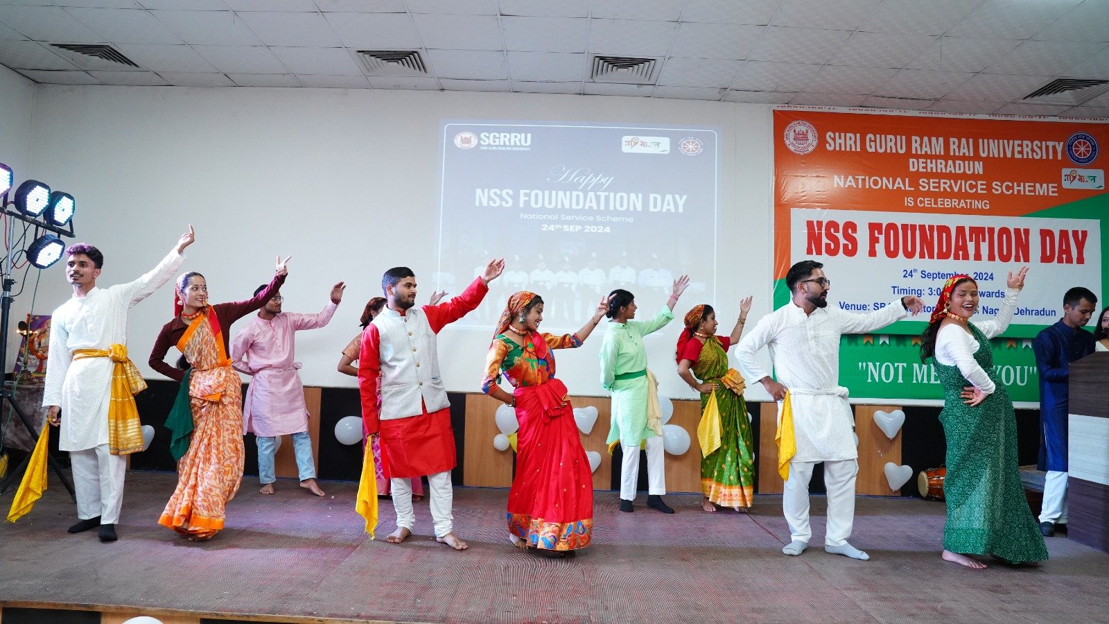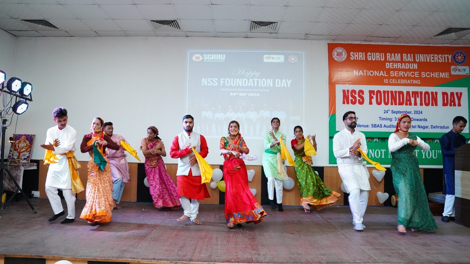 देहरादून। एसजीआरआर विश्वविद्यालय में आज राष्ट्रीय एनएसएस फाउन्डेशन डे की धुमधाम रही। विश्वविद्यालय के प्रेसीडेंट श्रीमहंत देवेन्द्र दास जी महाराज व कुलपति डाॅ. यशबीर दिवान ने कार्यक्रम के सफल आयोजन हेतु अपनी शुभकामनाए प्रेषित की। विश्वविद्यालय के सभागार मे आज एनएसएस फाउन्डेशन डे के अवसर पर रंगारंग कार्यक्रम आयोजित किया गया। कार्यक्रम का शुभारंभ मुख्य अतिथि एनएसएस समन्वयक, हेमवंती नन्दन बहुगुणा गढवाल विश्वविद्यालय, डाॅ. किरण वर्मा, एसजीआरआर विश्वविद्यालय के एनएसएस समन्वयक डाॅ. दीपक सोम व एनएसएस समन्वयक डाॅ. गीता रावत द्वारा दीप प्रज्जवलित कर किया गया।