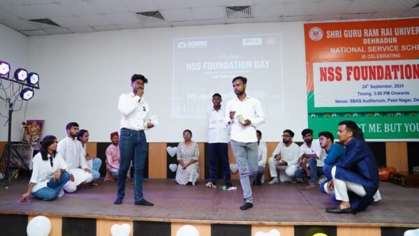 देहरादून। एसजीआरआर विश्वविद्यालय में आज राष्ट्रीय एनएसएस फाउन्डेशन डे की धुमधाम रही। विश्वविद्यालय के प्रेसीडेंट श्रीमहंत देवेन्द्र दास जी महाराज व कुलपति डाॅ. यशबीर दिवान ने कार्यक्रम के सफल आयोजन हेतु अपनी शुभकामनाए प्रेषित की। विश्वविद्यालय के सभागार मे आज एनएसएस फाउन्डेशन डे के अवसर पर रंगारंग कार्यक्रम आयोजित किया गया। कार्यक्रम का शुभारंभ मुख्य अतिथि एनएसएस समन्वयक, हेमवंती नन्दन बहुगुणा गढवाल विश्वविद्यालय, डाॅ. किरण वर्मा, एसजीआरआर विश्वविद्यालय के एनएसएस समन्वयक डाॅ. दीपक सोम व एनएसएस समन्वयक डाॅ. गीता रावत द्वारा दीप प्रज्जवलित कर किया गया।