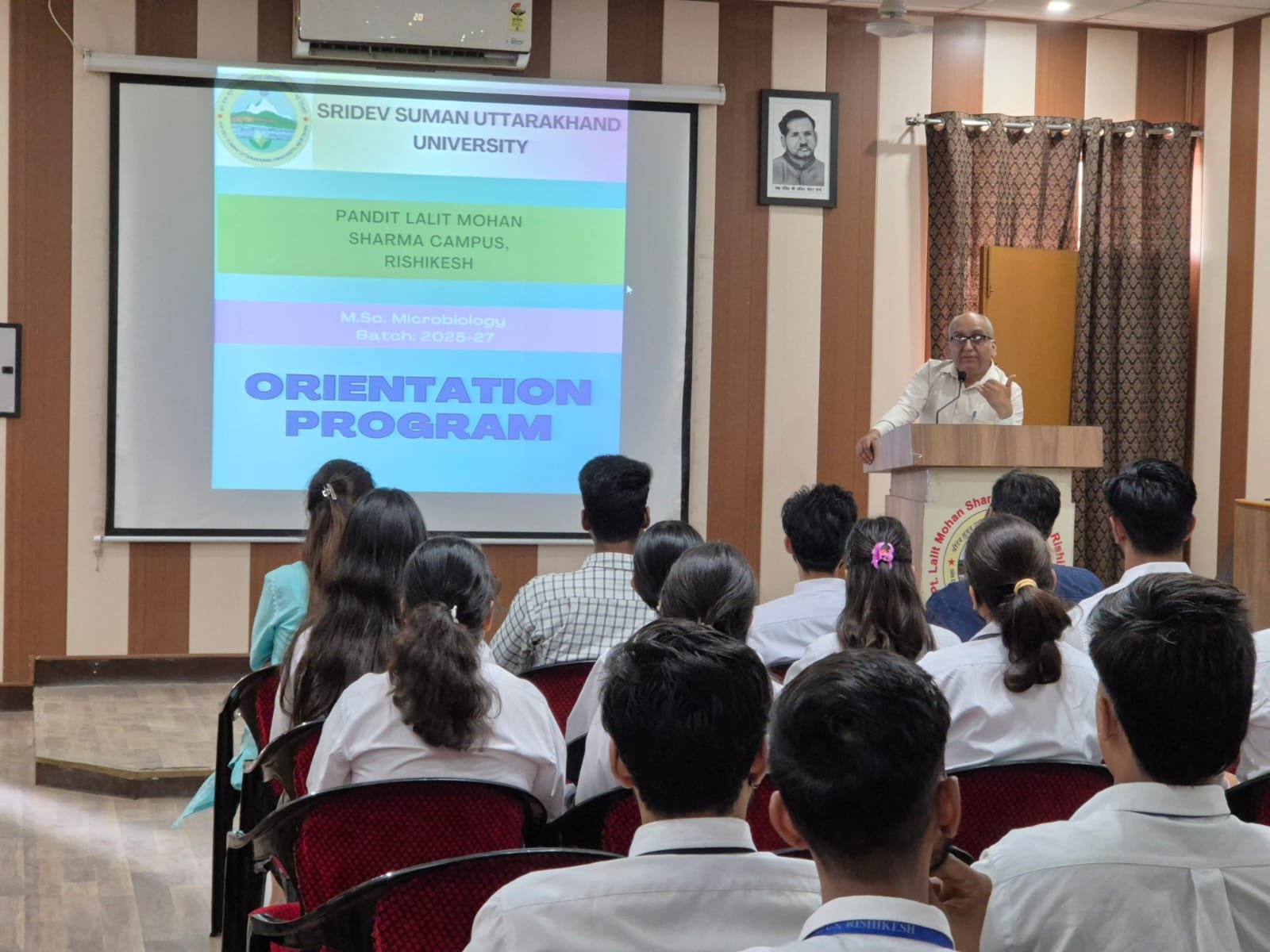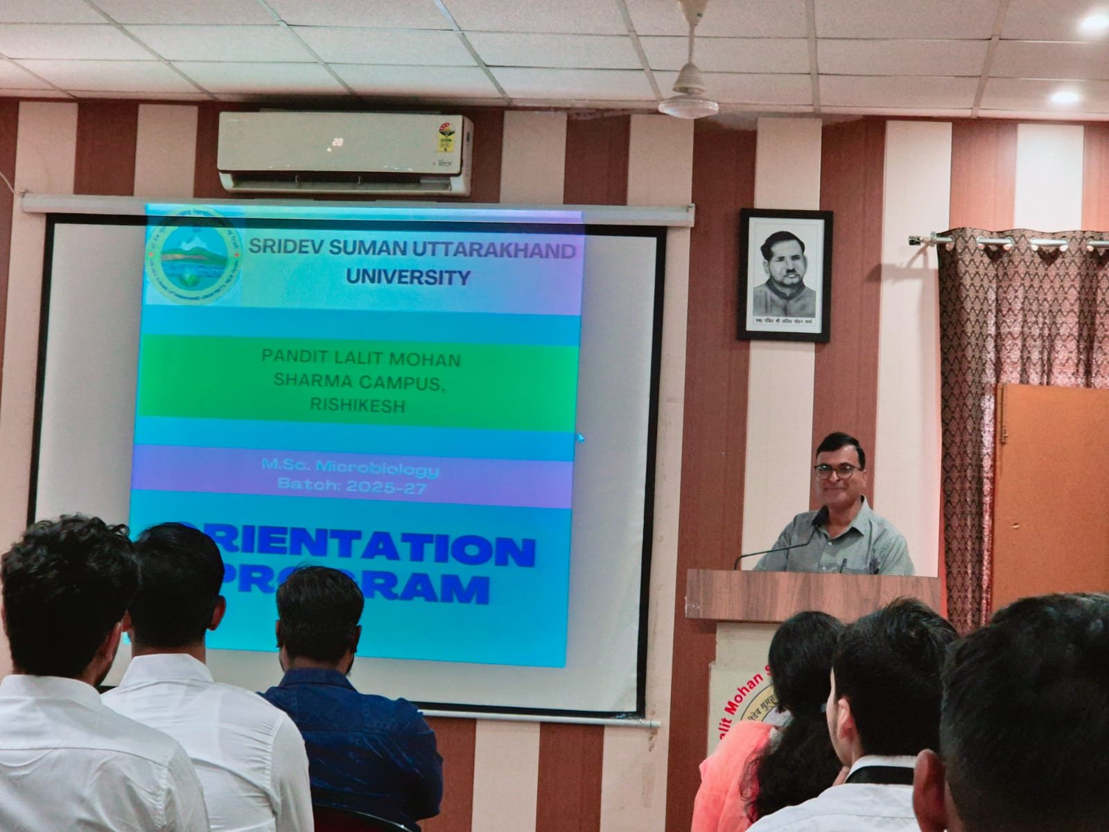 ऋषिकेश : पंडित ललित मोहन शर्मा श्री देव सुमन उत्तराखंड विश्वविद्यालय परिसर ऋषिकेश में संचालित स्नातकोत्तर पाठ्यक्रम एमएससी माइक्रोबायोलॉजी के सत्र 2025 26 के छात्र-छात्राओं के लिए अभिविन्यास कार्यक्रम (orientation program) आयोजित किया गया।