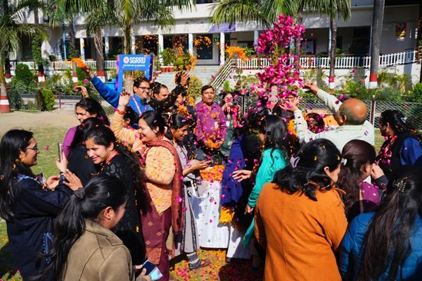 देहरादून। एसजीआरआर विश्वविद्यालय (एसजीआरआरयू) में मंगलवार को होली मिलन समारोह वायब्रेंटिका धूमधाम के साथ मनाया गया। हाई वोल्टेज सोउंड पर सभी डीन, फेकल्टी टीचिंग व नाॅन टीचिंग स्टाफ ने जमकर डांस किया। एक दूसरे को रंग गुलाल लगाकर होली की बधाईयां दीं। बुधवार को वायब्रंटिका-2025 का शुभारंभ कुलपति (प्रो.) डाॅ कुमुद सकलानी ने किया। कुलपति ने सभी डीन फेकल्टी सदस्यों, स्टाफ टीचिंग नाॅन टींचिग को होली पर्व की शुभकामनाएं दीं। इस अवसर पर श्री गुरु राम राय विश्वविद्यालय के प्रसीडेंट के सलाहकर डाॅ जे.पी. पचैरी, कुलसचिव डाॅ लोकेश गम्भीर ने फूलों की होली से कार्यक्रम का आगाज कर शुभकामनाएं प्रेषित कीं। इसके बाद गीत संगीत का दौर शुरू हुआ। गढ़वाली, कुमाऊंनी, हरियाणवी राजस्थानी गीतों की सुरलहरियों का सबने जमकर लुत्फ उठाया और जमकर डांस किया। एसजीआरआरयू के प्रांगण में गीत संगीत की बयार देर शाम तक बही।