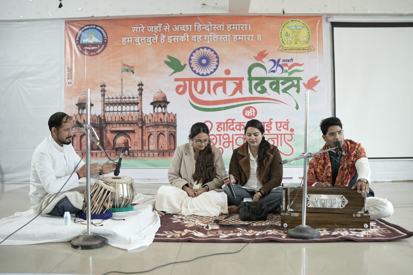 समारोह में बीएएमएस, योग एवं बीएनवाईएस के विद्यार्थियों ने योग प्रदर्शन, सामूहिक गीत, नृत्य, देशभक्ति गीतों एवं नाट्य प्रस्तुतियों के माध्यम से सभागार को ऊर्जा और वीर रस से भर दिया। इन प्रस्तुतियों ने राष्ट्रप्रेम के साथ-साथ सामाजिक चेतना का भी सशक्त संदेश दिया। संगीत विभाग द्वारा प्रस्तुत देश राग एवं लोक गीतों ने उपस्थित छात्र-छात्राओं एवं दर्शकों को मंत्रमुग्ध कर दिया। वहीं बीएएमएस के छात्रों द्वारा प्रस्तुत देशभक्ति पर आधारित नाट्य प्रस्तुति ने सभी को भावविभोर कर दिया और अनेक दर्शकों की आँखें नम हो गईं।