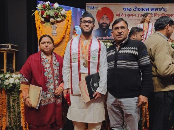 चमोली । श्री देव सुमन उत्तराखंड विश्वविद्यालय के पंडित ललित मोहन शर्मा परिसर, ऋषिकेश स्थित विवेकानंद सभागार में शुक्रवार को छठवां दीक्षांत समारोह–2026 भव्य रूप से आयोजित किया गया। समारोह में राज्यपाल लेफ्टिनेंट जनरल (सेवानिवृत्त) गुरमीत सिंह एवं उच्च शिक्षा मंत्री धन सिंह रावत ने विश्वविद्यालय के 83 मेधावी विद्यार्थियों को स्वर्ण पदक प्रदान किए। इसी स्वर्ण पदक विजेताओं की सूची में सीमांत विकासखंड जोशीमठ के ऋषभ कपरवान का नाम भी शामिल रहा। ऋषभ कपरवान ने राजकीय स्नातकोत्तर महाविद्यालय, गोपेश्वर से एमएससी (वनस्पति विज्ञान) में अध्ययन करते हुए पूरे उत्तराखंड में सर्वोच्च अंक प्राप्त कर यह गौरव हासिल किया। उनकी इस उपलब्धि से महाविद्यालय गोपेश्वर और परिवार में हर्ष का माहौल है।