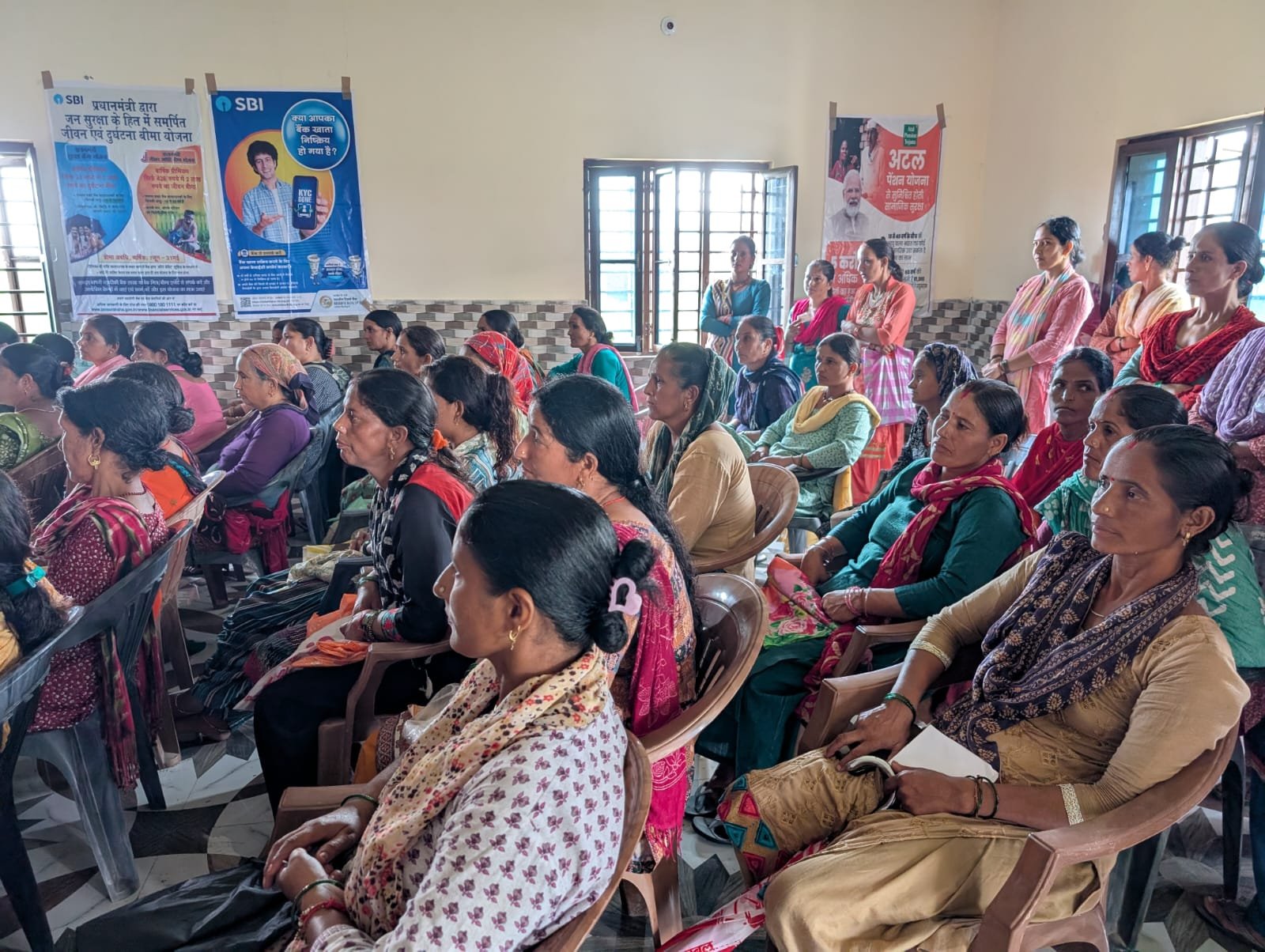 हरिद्वार : वित्तीय समावेशन को बढ़ावा देने के उद्देश्य से भारतीय स्टेट बैंक (SBI) ने ग्राम पंचायत टिहरी विकास नगर, हरिद्वार में वित्तीय समावेशन सैचुरेशन कैंप का आयोजन किया। इसी क्रम में स्टेट बैंक ऑफ इंडिया (SBI) ने टिहरी विकास नगर, हरिद्वार में शिविर आयोजित किया। इन कैंपों में प्रतिभागियों को री-केवाईसी प्रक्रिया, डिजिटल धोखाधड़ी से बचाव, नामांकन की प्रक्रिया तथा विभिन्न सामाजिक सुरक्षा योजनाओं — प्रधानमंत्री जीवन ज्योति बीमा योजना (PMJJBY), प्रधानमंत्री सुरक्षा बीमा योजना (PMSBY), अटल पेंशन योजना (APY) और प्रधानमंत्री जनधन योजना (PMJDY) — की जानकारी दी गई। पात्र प्रतिभागियों के खाते मौके पर ही री-केवाईसी कर अपडेट किए गए और उन्हें संबंधित योजनाओं में नामांकित भी किया गया। साथ ही कैम्प में 20 ग्रामीणों के खाते भी खोले गये । कैंप में प्रमुख अतिथि के रूप में दीप्ति अग्रवाल, बैंक लोकपाल (RBI), धीरज अरोड़ा, सहायक महाप्रबंधक (RBI), दिनेश कुमार गुप्ता, लीड जिला प्रबंधक हरिद्वार एवं नीलिमा, प्रबंधक (SBI) उपस्थित रहे।