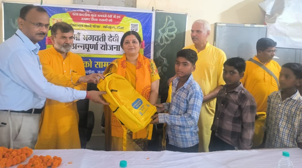 हरिद्वार : मां भगवती देवी अन्नपूर्णा योजना के अंतर्गत शांतिकुंज द्वारा खानपुर ब्लॉक के 12 उच्च. प्राथ. विद्यालय के कुल 753 छात्र-छात्राओं को स्कूल बैग किट वितरित किए गए। प्रत्येक बैग किट में कॉपियाँ, पेन, पानी की बॉटल आदि आवश्यक शैक्षणिक सामग्री सम्मिलित थी। स्कूल बैग किट पाकर बच्चों के चेहरे खुशी से खिल उठे। यह वितरण कार्यक्रम राजकीय उच्चतर प्राथमिक विद्यालय खानपुर के विद्यालय में आयोजित हुआ, जहाँ सभी बारह विद्यालयों के विद्यार्थी उपस्थित रहे। कार्यक्रम का नेतृत्व गायत्री विद्यापीठ शांतिकुंज की व्यवस्था मंडल प्रमुख शैफाली पंड्या एवं व्यवस्थापक श्री योगेन्द्र गिरि द्वारा किया गया।