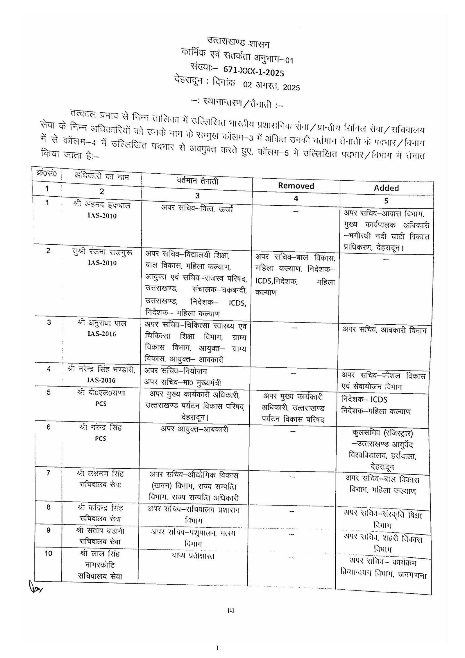 देहरादून : उत्तराखंड शासन के कार्मिक एवं सतर्कता विभाग ने आईएएस, पीसीएस और सचिवालय सेवा के अधिकारियों की तबादला सूचि जारी की है।