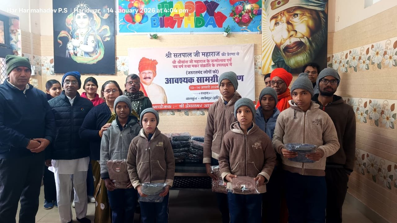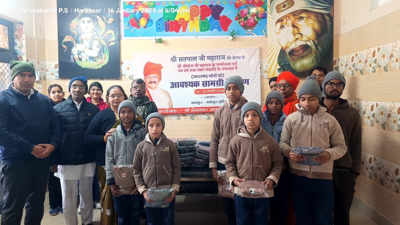 हरिद्वार : हरिद्वार सुप्रसिद्ध आध्यात्मिक एवं समाजसेवी संस्था श्री प्रेमनगर आश्रम द्वारा सतपाल महाराज की प्रेरणा से जिला कारागार रोशनाबाद में कैदियों के लिए पर्याप्त कम्बल एवं बालकुंज सलेमपुर, हरिद्वार के जरूरतमंद बच्चों के लिए वस्त्र वितरण किया गया। उल्लेखनीय है कि श्री प्रेमनगर आश्रम एक अखिल भारतीय पंजीकृत आध्यात्मिक एवं समाजसेवी संस्था है। संस्था के प्रेरणास्रोत सतपाल महाराज की प्रेरणा से श्री प्रेमनगर आश्रम समय-समय पर अनेकों समाज सेवा का कार्य करता है। जरूरतमंद लोगों को निःशुल्क राशन समाग्री, वस्त्र, कम्बल, फल, औषधि वितरण तथा रक्तदान शिविर निःशुल्क स्वास्थ परीक्षण आदि सेवा कार्य इस संस्था द्वारा किया जाता रहा है। कोरोना काल में कोरोना पीड़ितों को निःशुल्क औषधि भोजन राशन सामाग्री एवं आवास व्यवस्था जैसे सामाजिक सेवा कार्य किये गये 14 जनवरी 2026, को मकर संक्रांति के उपल्क्ष्य में सामाजिक सेवा कार्य किये गये।