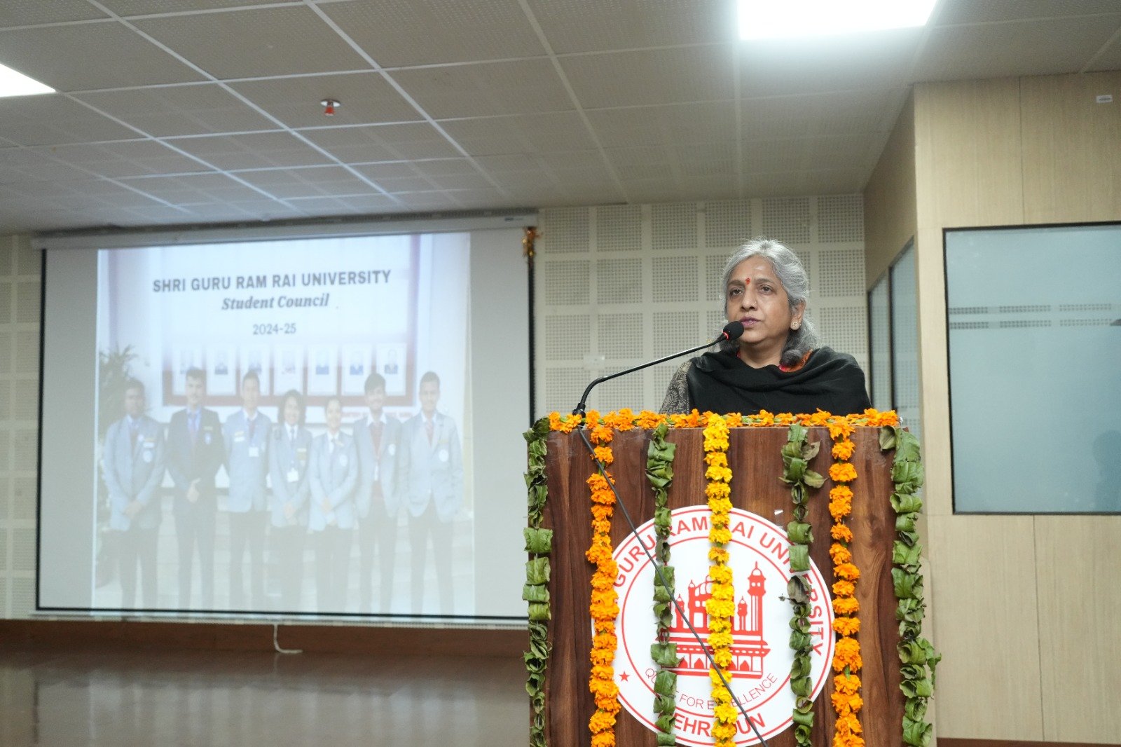 कार्यक्रम का शुभारंभ दीप प्रज्वलित कर किया गया। छात्रों को संबोधित करते हुए विश्वविद्यालय की कुलपति प्रो. डॉ कुमुद सकलानी ने कहा कि यह छात्रों के सम्मान का दिवस है,उन्होंने खुशी व्यक्त की कि छात्रों में नेतृत्व के गुण पनप रहे हैं। इस अवसर पर  प्रो जेपी पचैरी, सलाहकार, माननीय प्रेसीडेंट ने भी विचार व्यक्त किए। डीएसडब्ल्यू प्रोफेसर डॉ मालविका कांडपाल ने छात्रों को संबोधित करते हुए कहा कि आज छात्रों को  संकल्प के साथ आगे बढ़ने की आवश्यकता है, उन्होंने आशा व्यक्त करते हुए कहा कि असफलताएं ही सफलता की सीढ़ियां होती हैं। छात्रों को अपने लक्ष्यों को प्राप्त करने के लिए कड़ी मेहनत करनी चाहिए।