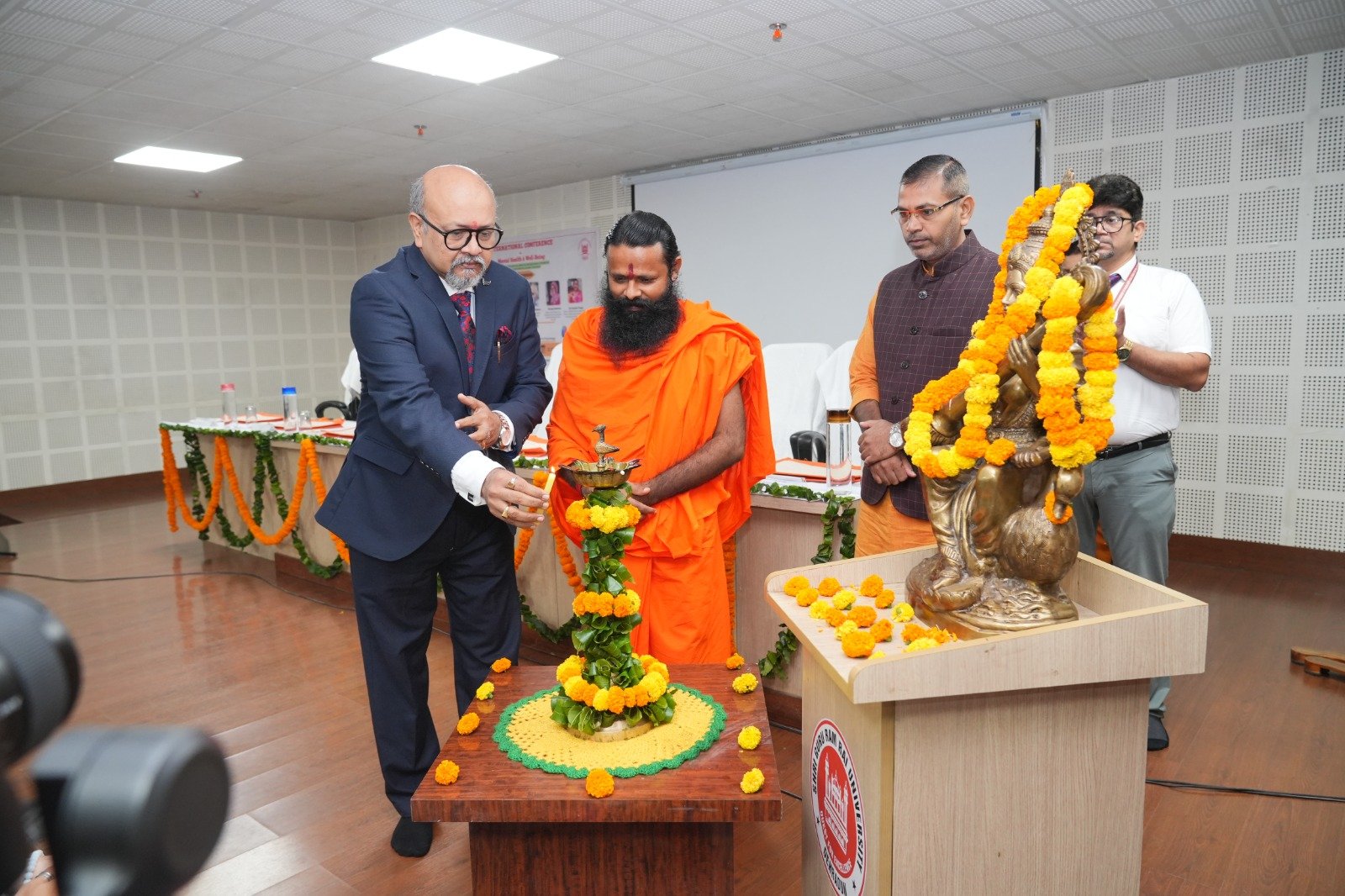 सम्मेलन का उद्घाटन दीप प्रज्वलन के साथ विश्वविद्यालय के प्रभारी कुलपति प्रो. (डॉ.) प्रथपन के पिल्लई, डीन स्टूडेंट वेलफेयर प्रो. (डॉ.) मालविका कांडपाल, मानविकी संकाय की डीन प्रो. (डॉ.) प्रीति तिवारी, स्वामी डॉ. परमार्थ देव, डॉ. सुरेंद्र कुमार ढलवाल और डॉ. संतोष विश्वकर्मा ने संयुक्त रूप से किया। विश्वविद्यालय के माननीय प्रेसीडेंट श्रीमहंत देवेन्द्र दास जी महाराज ने अपने शुभ संदेश में सम्मेलन आयोजकों को बधाई देते हुए कहा कि मानसिक स्वास्थ्य आज की सबसे बड़ी आवश्यकता है और इस दिशा में ऐसे सम्मेलन समाज के लिए अत्यंत उपयोगी सिद्ध होंगे।