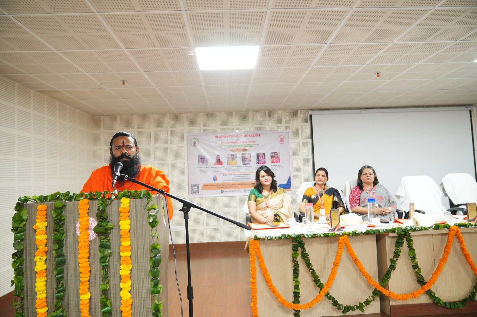 मुख्य वक्ता स्वामी डॉ. परमार्थ देव, मुख्य केंद्रीय समन्वयक, भारत स्वाभिमान न्यास, पतंजलि योगपीठ ने कहा कि आत्म, प्रकृति और चेतना के संतुलन से ही सच्चा मानसिक स्वास्थ्य प्राप्त किया जा सकता है। उन्होंने छात्रों को अनुशासित जीवन और भारतीय ज्ञान प्रणाली को अपनाने की प्रेरणा दी। डॉ. सुरेंद्र कुमार ढलवाल, विभागाध्यक्ष, राष्ट्रीय दृष्टिबाधित व्यक्ति सशक्तिकरण संस्थान, देहरादून ने आयुर्वेदिक दृष्टिकोण से मानसिक स्वास्थ्य पर अपने विचार रखे और कहा कि योग और आयुर्वेद मानसिक संतुलन के वैज्ञानिक साधन हैं। वहीं डॉ. संतोष विश्वकर्मा ने आत्म-अनुशासन और ध्यान की महत्ता पर प्रकाश डालते हुए कहा कि मानसिक शांति आत्मनियंत्रण से उत्पन्न होती है।