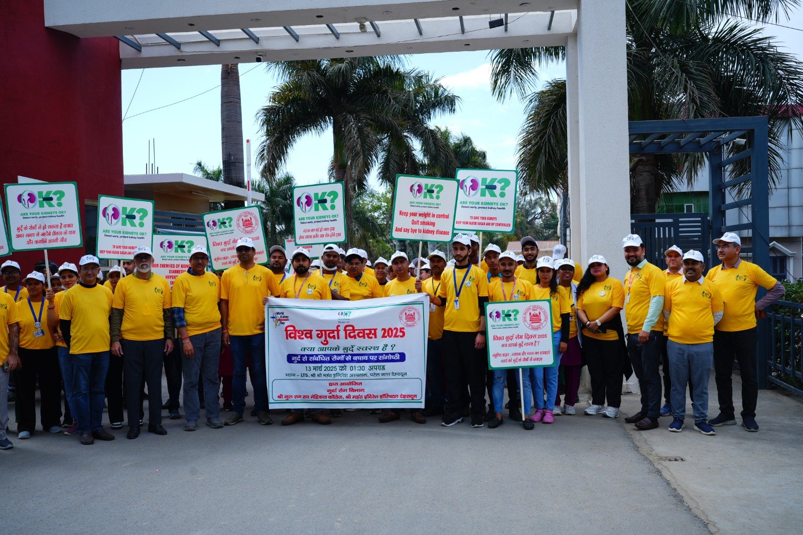 गुरुवार को श्री गुरु राम राय इंस्टीट्यूट ऑफ मेडिकल एण्ड हेल्थ साइंसेज परिसर से रैली का शुभारंभ हुआ। एसजीआरआर मेडिकल काॅलेज के प्राचार्य डाॅ अशोक नायक एवं श्री महंत इन्दिरेश अस्पताल के चिकित्सा अधीक्षक डाॅ अजय पंडिता ने रैली को हरी झण्डी दिखाकर रवाना किया। क्या आपकी किडनी स्वस्थ है थीम पर डाॅक्टरों ने किडनी बचाने का संदेश दिया। डाॅक्टरों एवं मेडिकल छात्र-छात्राओं ने हाथों में किडनी बचाव के स्लागन व नारों से किडनी स्वास्थ्य सम्बन्धित जागरुकता की अलख जगाई। रैली में उन्होंने संतुलित आहार, व्यायाम व स्वच्छ जल अपनाईए स्वयं को गुर्दा रोगों से बचाईए। वनज को नियंत्रित रखें व धूम्रपान छोड़े गुर्दा रोगों को कहें बाय बाय। ब्लड प्रेशर एवम शुगर को नियंत्रित रखें, गुर्दाें को बीमारी से बचाएं जैसे संदेशों से आमजन को जागरूक किया।