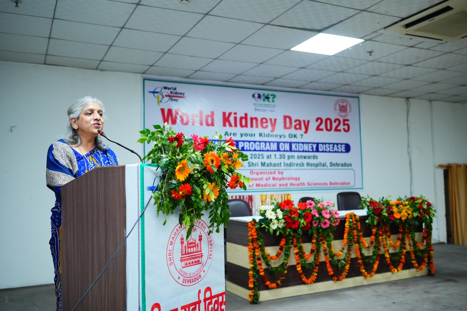 इसके पश्चात श्री महंत इन्दिरेश अस्पताल के ऑडिटोरियम में एक संगोष्ठी का आयोजन किया गया। श्री गुरु राम राय विश्वविद्यालय की कुलपति डाॅ कुमुद सकलानी ने श्री महंत इन्दिरेश अस्पताल के गुर्दा रोग विभाग की पूरी टीम को बधाई दी। उन्होंने कि श्री महंत इन्दिरेश अस्पताल का गुर्दा रोग विभाग मरीजों की सेवा में उल्लेखनीय कार्य कर रहा है। डाॅ आलोक कुमार एवं डाॅ विवेक रुहेला, गुर्दा रोग विशेषज्ञ ने विश्व किडनी दिवस के महत्व को समझाया। डाॅ डोरछम ख्रमे ने विश्व किडनी दिवस पर सभी को बधाई एवं शुभकामनाएं दीं।