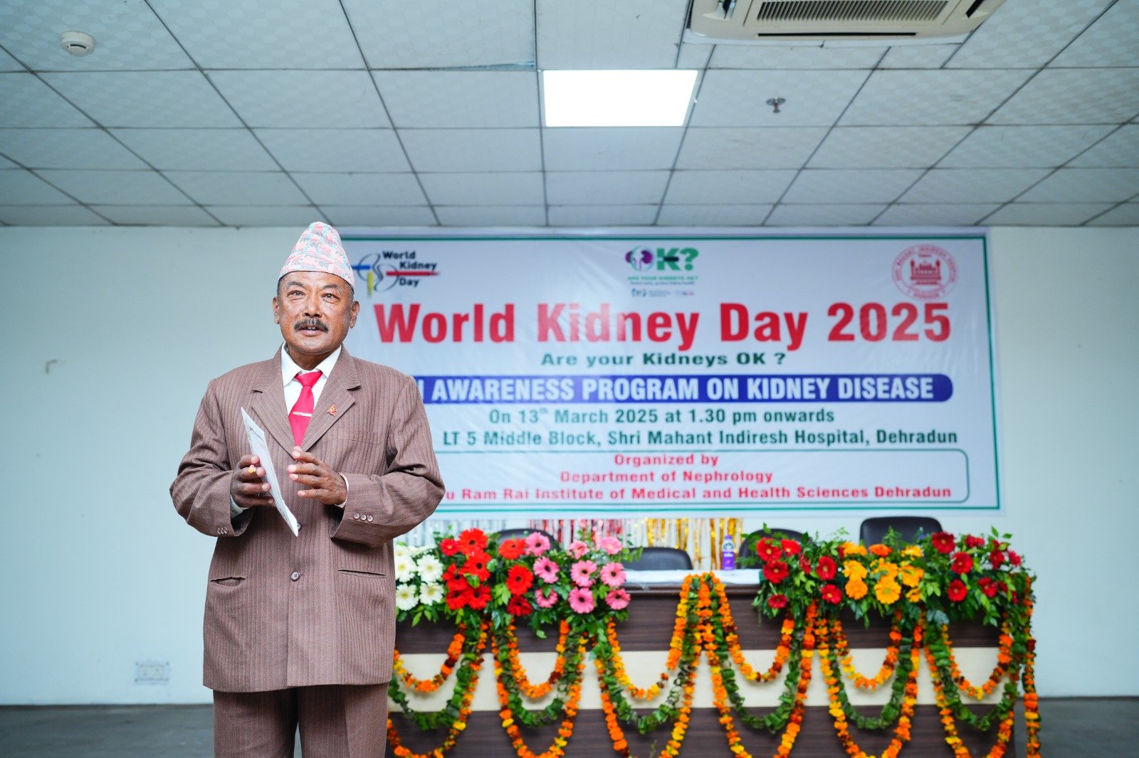 कार्यक्रम में डाॅ अशोक नायक, डाॅ उत्कर्ष शर्मा, मुख्य चिकित्सा अधीक्षक श्री महंत इन्दिरेश अस्पताल, डाॅ अजय पंडिता, चिकित्सा अधीक्षक, डाॅ गौरव रतूड़ी, चिकित्सा अधीक्षक, डाॅ पुनीत ओहरी, उप प्राचार्य ने भी महत्वपूर्ण जानकारियां सांझा की। डाॅ विवेक विज्जन, डाॅ विमल कुमार दीक्षित ने पैनल परिचर्चा में लोगों की जिज्ञासाओं को शांत किया। मंच संचालन सिमरन अग्रवाल व दीप्ति चंद ने किया। डाॅ गौरव शेखर शर्मा ने धन्यवाद प्रस्ताव ज्ञापित किया। कार्यक्रम में किडनी रोगियों एवं उनके परिजनों ने प्रतिभाग कर किडनी बीमारयों से बचाव के बारे में महत्वपूर्णं जानकारियां अर्जित कीं।  इस अवसर पर श्री महंत इन्दिरेश अस्पताल के विभिन्न विभागों के डाॅक्टर, नसिंग स्टाफ व गुर्दा रोग विभाग की पूरी टीम उपस्थित रही।