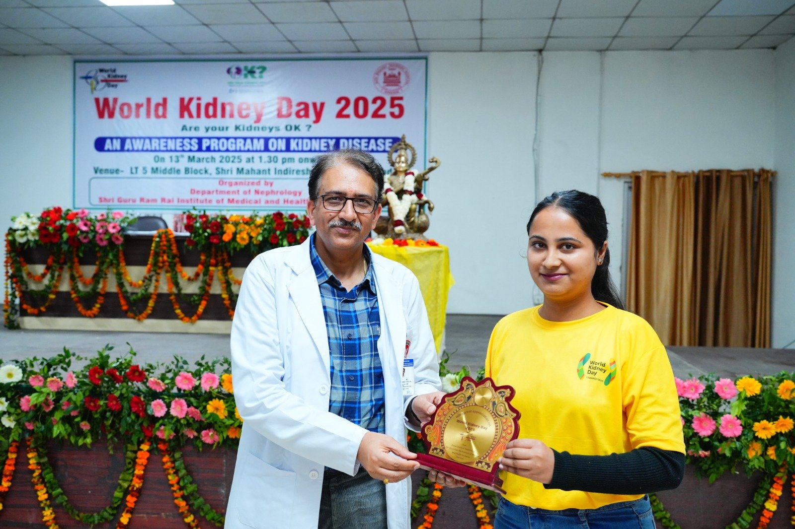 देहरादून। श्री गुरु राम राय इंस्टीट्यूट ऑफ मेडिकल एण्ड हैल्थ साइंसेज़ के किडनी रोग विभाग की ओर से जनजागरूता कार्यक्रम आयोजित किया गया। विश्व किडनी दिवस के अवसर पर जागरूकता रैली एवं एक सेलीब्रेशन कार्यक्रम का आयोजन किया गया। श्री महंत इन्दिरेश अस्पताल के डाॅक्टरों एवं स्टाफ ने किडनी जागरुकता रैली में बढ़चढ़ कर भाग लिया। हर वर्ष मार्च माह के द्वितीय गुरुवार को दुनिया भर में विश्व किडनी दिवस मनाया जाता है। इस अवसर पर रैली में शामिल सभी लोगो ने जनजागरूकता के माध्यम से किडनी बचाने का संकल्प लिया। किडनी रोगों से बचाव एवं रोकथाम विषय पर आयोजित पोस्टर प्रतियोगिता के विजेताओं को पुरस्कार देकर सम्मानित किया गया।