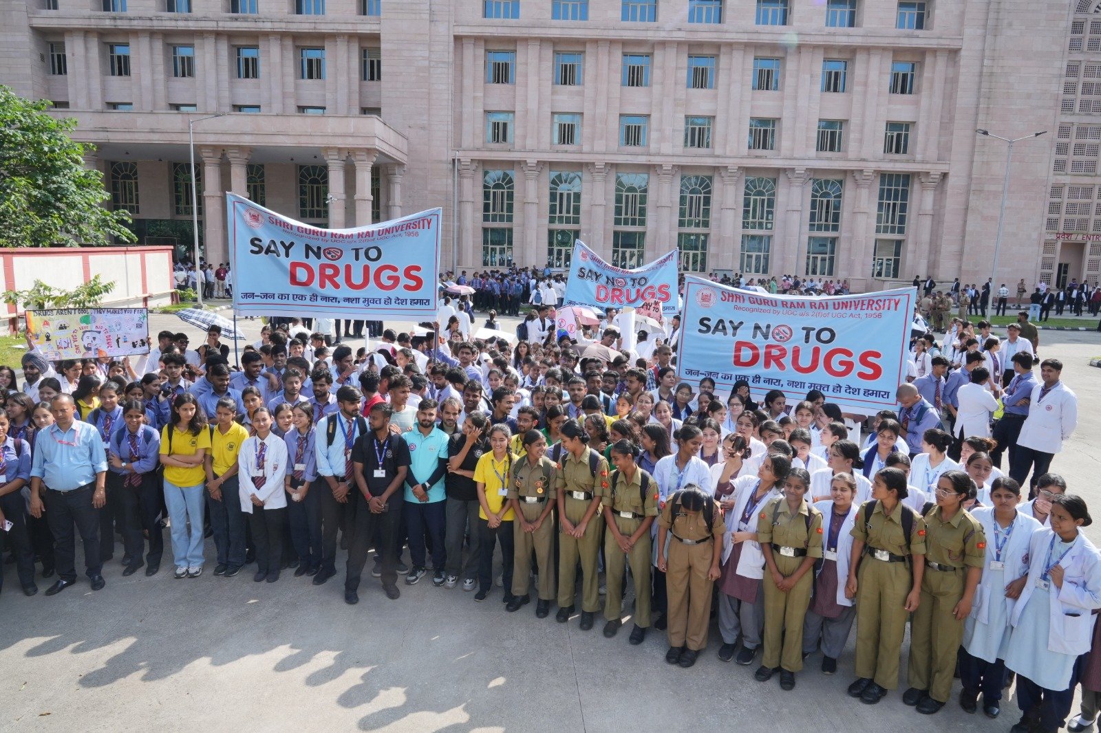 बार एसोएिशन देहरादून की ओर से आहुत इस विशाल रैली में श्री गुरु राम राय विश्वविद्यालय से करीब दो हजार छात्र-छात्राओं और फैकल्टी सदस्यों ने भाग लेकर समाज को नशा छोड़ने का संदेश दिया। रैली में देहरादून बार एसोसिएशन, वकीलों, विभिन्न सामाजिक संगठनों एवं दूनवासियों ने प्रतिभाग किया। जिला न्यायालय परिसर से देहरादून में उत्तराखंड हाईकोर्ट नैनीताल के माननीय न्यायाधीश जस्टिस मनोज तिवारी एवं बार एसोसिएशन देहरादून के अध्यक्ष मनमोहन कंडवाल ने हरी झंडी दिखाकर रवाना किया। जिला न्यायालय परिसर से प्रारम्भ होकर गांधी पार्क पर जाकर रैली सम्पन्न हुई ।