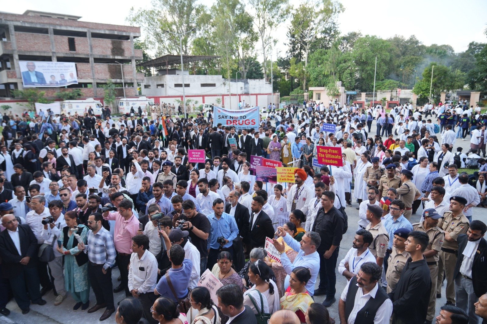 एसजीआरआरयू के छात्र-छात्राओं ने नशा विरुद्ध जनसंदेश रैली में दिया नशा ना करने का सन्देश