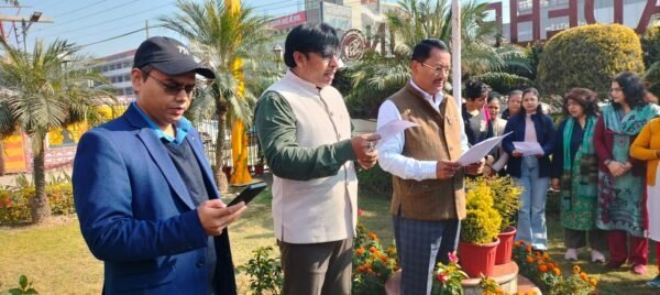 सचिव मोहन सिंह बर्निया ने उपस्थित सभी अधिकारियों, कर्मचारियों और आम नागरिकों को संविधान दिवस एवं विधि दिवस की शुभकामनाएं प्रेषित कीं। उन्होंने कहा कि 26 नवंबर 1949 का दिन भारत के इतिहास में सदा स्वर्णिम अक्षरों में अंकित रहेगा, क्योंकि इसी दिन संविधान सभा ने भारतीय संविधान को स्वीकार कर लोकतंत्र की मजबूत नींव रखी। सचिव मोहन सिंह बर्निया ने इस अवसर पर संविधान के मुख्य शिल्पकार बाबा साहेब डॉ. भीमराव अंबेडकर को भावपूर्ण श्रद्धांजलि अर्पित करते हुए कहा कि भारतीय संविधान न केवल विश्व का सबसे विस्तृत और समावेशी संविधान है, बल्कि यह हर नागरिक को समान अधिकार और अवसर प्रदान करने की महान व्यवस्था भी है। उन्होंने कहा कि संविधान दिवस हमें स्मरण कराता है कि राष्ट्र के विकास, प्रगति और सुशासन की आधारशिला संविधान ही है, और प्रत्येक नागरिक का दायित्व है कि वह संविधान द्वारा प्रदत्त मूल्यों का पालन करे।