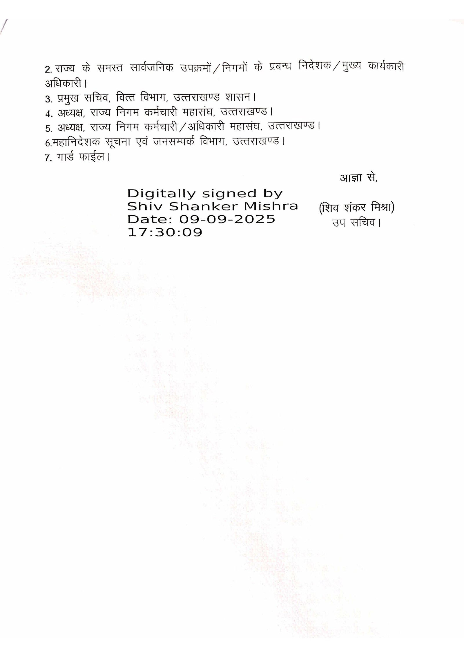 राज्य निगम कर्मचारी महासंघ, उत्तराखण्ड की पहल पर राज्य के विभिन्न निगमों, सार्वजनिक उपक्रमों एवं स्वायतशासी संस्थाओं में कार्यरत सभी कर्मचारियों के हित में एक ऐतिहासिक निर्णय लिया गया है। सरकार ने पांचवे/छठवें केन्द्रीय वेतनमान के तहत 11 प्रतिशत महंगाई भत्ते (डीए) का शासनादेश जारी किया है। इस महत्वपूर्ण निर्णय के लिए राज्य निगम कर्मचारी महासंघ ने मुख्यमंत्री पुष्कर सिंह धामी के प्रति हार्दिक आभार व्यक्त किया है। महासंघ का कहना है कि इस निर्णय से हजारों कर्मचारियों को सीधा आर्थिक लाभ मिलेगा और उनके जीवन स्तर में सुधार होगा। यह शासनादेश लंबे समय से चली आ रही कर्मचारियों की मांग को पूरा करने वाला कदम है।