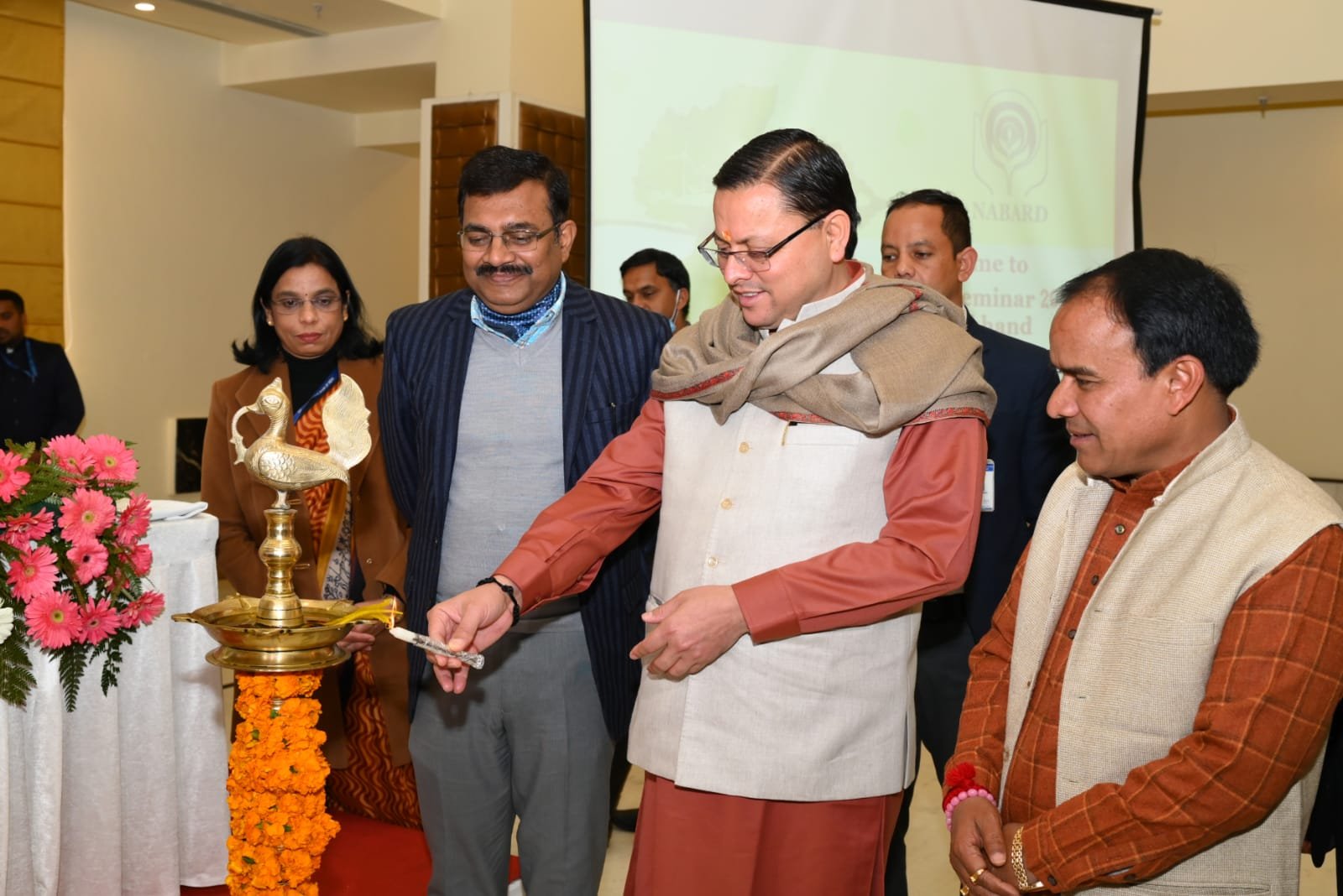 देहरादून : मुख्यमंत्री पुष्कर सिंह धामी ने मंगलवार को सुभाष रोड, देहरादून स्थित एक होटल में नाबार्ड द्वारा आयोजित स्टेट क्रेडिट सेमिनार 2023-24 में प्रतिभाग किया। इस अवसर पर उन्होंने  नाबार्ड द्वारा तैयार किये गये स्टेट फोकस पेपर 2023-24 का विमोचन किया।  नाबार्ड द्वारा वर्ष 2023-24 हेतु उत्तराखण्ड राज्य के लिए प्राथमिकता क्षेत्र में 30301 करोड़ रूपये की ऋण संभाव्यता का आंकलन किया गया है। जो विगत वर्ष की तुलना में 6.22 प्रतिशत अधिक है।