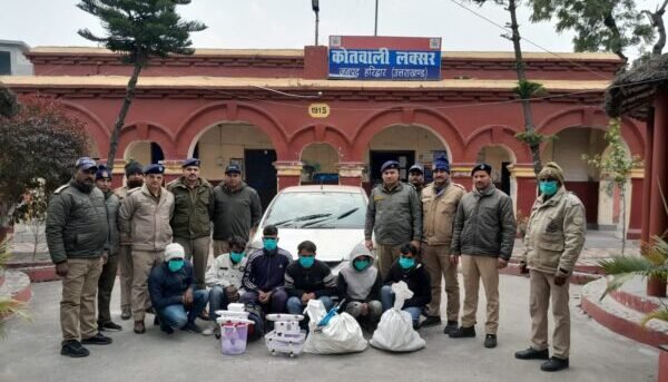लक्सर/हरिद्वार : हरिद्वार पुलिस ने 18 जनवरी 2023 को बड़ी कामयाबी हासिल करते हुए एक खण्डर में डकैती की योजना बनाने की जानकारी प्राप्त होने पर दबिश देकर 06 बदमाशो को पकडा गया। बदमाशों के कब्जे से 03 तमंचे व 03 अवैध चाकू व कई कारतूस व सुल्तानपुर में विगत दिनो में हुई 02 चोरी की घटनाओं में चोरी हुए ए0टी0एम0 व मोबाईल फोन बरामद किये गये। बरामदगी के आधार पर होंडा सिटी कार लेकर लक्सर स्थित सोलर पावर प्लांट में डकैती हेतु आए अभियुक्तों को डकैती की योजना बनाने के अपराध में गिरफ्तार किया गया। सख्ती से पूछताछ करने पर गिरफ्तार किए गए अभियुक्त द्वारा लक्सर क्षेत्रान्त्तर्गत 06 चोरी की घटनाओं व थाना भगवानपुर क्षेत्र में माह नवम्बर में कार लूट की घटना को अंजाम देना स्वीकार किया गया है। अभियुक्तों की निशानदेही पर लक्सर के अलग-अलग स्थानो पर चोरी की गयी विद्युत केबल व चोरी की 02 घटनाओं से सम्बन्धित कास्मेटिक्स, परचून का सामान व डकैती की घटना को अंजाम देने के लिए प्रयोग किए गए उपकरण (प्लास, केवल कटर आदि) बरामद किये गये।