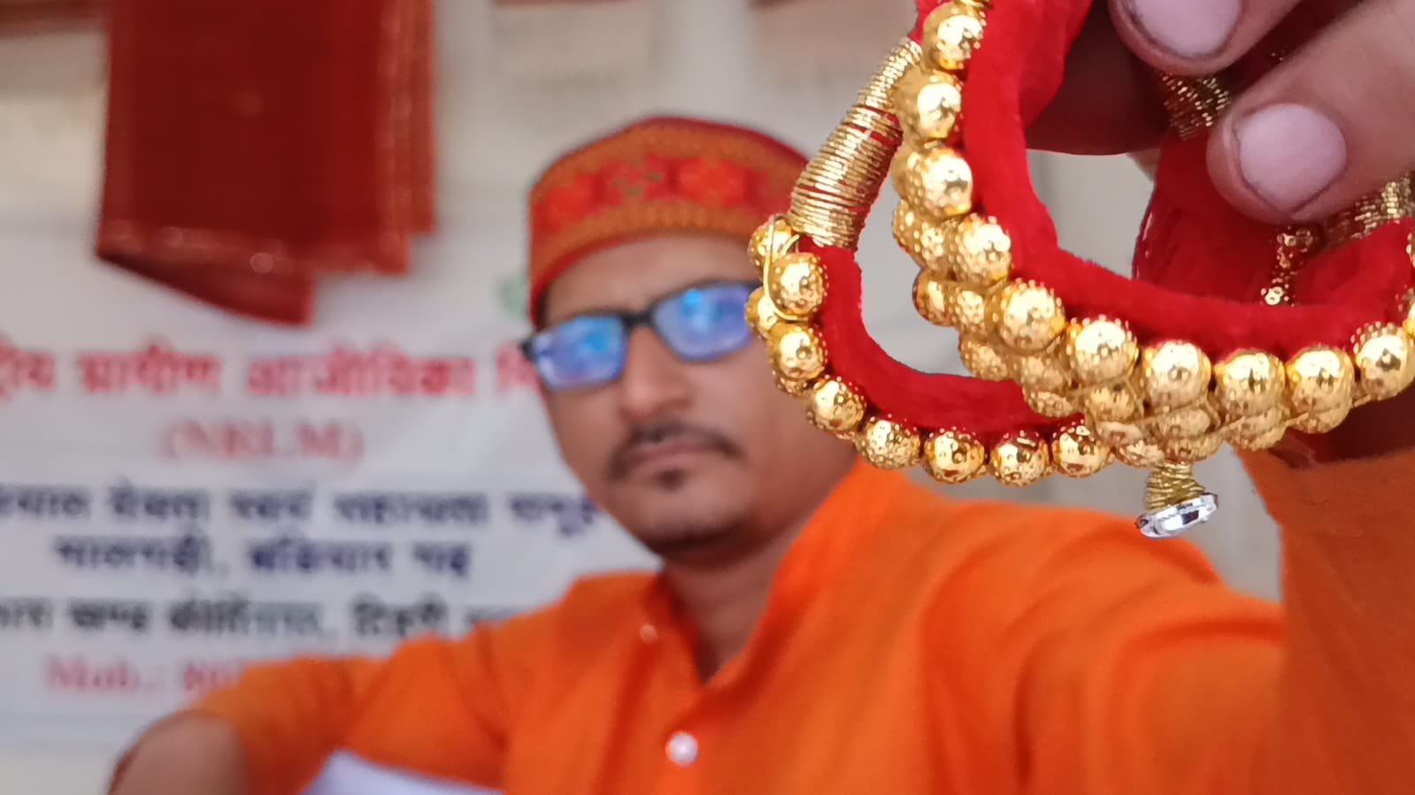 हरिद्वार : हरिद्वार में आयोजित देवभूमि रजत उत्सव में लगाए गए स्टॉल में टिहरी के कीर्ति नगर ब्लॉक से पहुंचे घड़ियाल देवता स्वयं सहायता समूह की ओर से उत्तराखंड की संस्कृति से जुड़े पारंपरिक परिधान को लेकर कार्य कर रहा है। सहायता समूह की ओर से उत्तराखंड की दुल्हन के गहने और उत्तराखंड की टोपी बनाई जाती है । गहनों में जैसे कनफुल, मांग टीका, गुला बंद, पहाड़ी नथ, मंगलसूत्र बनाए जाते हैं, वहीं इसके साथ उत्तराखंडी टोपी के रूप में गढ़वाली-कुमाऊनी टोपी, हैंडमेड वूलन और कॉटन की टोपी भी बनाई जाती हैं। पहाड़ी ज्वेलरी को दिल्ली, मुंबई, चंडीगढ़ के अलावा अमेरिका, दुबई, china, सिंगापुर, इटली और भारत के अलग-अलग राज्यों से उत्तराखंड की टोपी और पहाड़ी गहनों की ऑर्डर लगातार मिलते हैं। समूह में पहुंचे विनोद असवाल ने बताया कि उनके समूह की वार्षिक आए 15 से 20 लख रुपए के बीच हैं। बताया कि समूह में 15 से 20 महिलाएं इस कार्य को करती हैं। उन्होंने कहा कि लगातार प्रधानमंत्री नरेंद्र मोदी और उत्तराखंड के मुख्यमंत्री पुष्कर सिंह धामी पूरे विश्व में उत्तराखंड के परिधानों को बढ़ावा दे रहे हैं जिसका लाभ लगातार हमारे जैसे सहायता समूह को मिल रहा है इसका धन्यवाद उन्होंने मुख्यमंत्री जी के लिए किया।