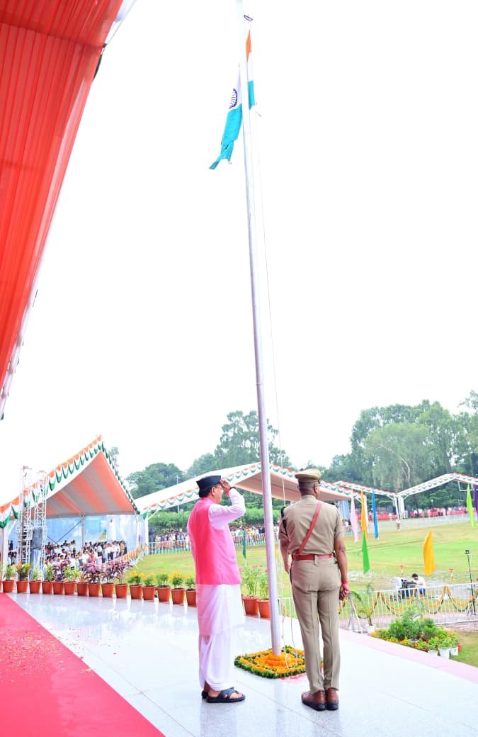 मुख्यमंत्री ने कहा कि आजादी की 78 वर्षों की गौरवपूर्ण यात्रा में देशवासियों के अदम्य साहस, अटूट समर्पण और निरन्तर परिश्रम के बल पर हमारा राष्ट्र अनेक चुनौतियों का सामना करने के बावजूद सशक्त और आत्मनिर्भर राष्ट्र के रूप में आगे बढ़ रहा है। प्रधानमंत्री नरेंद्र मोदी के नेतृत्व में, वर्ष 2047 तक भारत पूर्ण विकसित राष्ट्र के रूप में स्थापित होने के संकल्प के साथ, तीव्र गति से प्रगति के पथ पर अग्रसर है। आज भारत की अर्थव्यवस्था विश्व की चौथी सबसे बड़ी अर्थव्यवस्था बन गई है। रक्षा, विज्ञान, तकनीकी कृषि, स्वास्थ्य, शिक्षा, इंफ्रास्ट्रक्चर हर क्षेत्र में देश तेजी से कार्य हो रहे हैं। वैश्विक स्तर पर भारत एक सशक्त राष्ट्र के रूप में उभर रहा है। प्रधानमंत्री के नेतृत्व में सेना का मनोबल बढ़ाने के साथ ही देश को रक्षा के क्षेत्र में आत्मनिर्भर बनाया जा रहा है। ‘ऑपरेशन सिंदूर’ के तहत भारत की शक्ति और सामर्थ्य को पूरी दुनिया ने देखा।