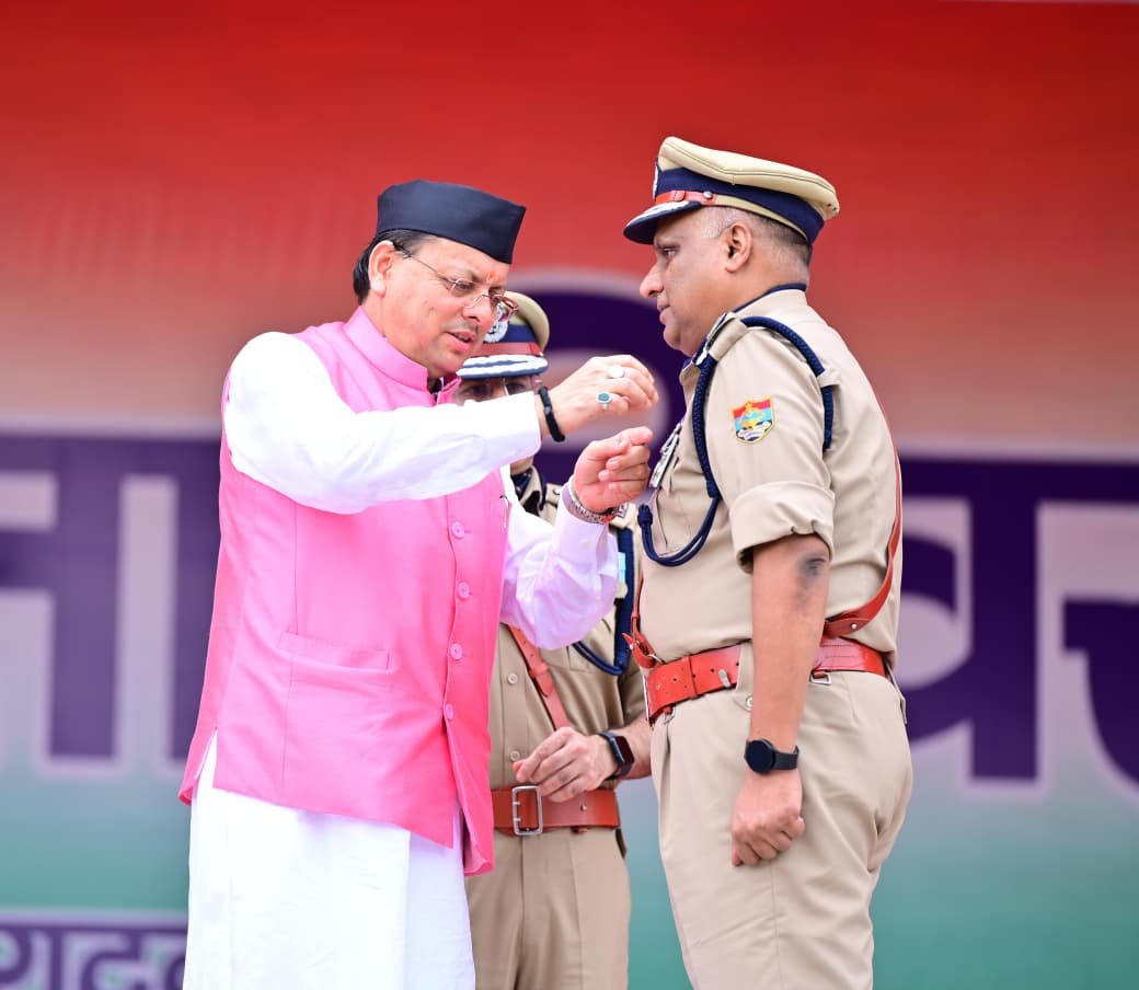 मुख्यमंत्री ने कार्यक्रम के दौरान अपर पुलिस महानिदेशक अजय प्रकाश अंशुमान को राष्ट्रपति विशिष्ट सेवा पदक से सम्मानित किया। सेवा के आधार पर मुख्यमंत्री सराहनीय सेवा पदक से श्वेता चौबे, सेनानायक आईआरबी द्धितीय देहरादून, योगेश चन्द्र पुलिस उपाधीक्षक, विपिन चन्द्र पाठक, निरीक्षक नागरिक पुलिस, नरेन्द्र सिंह बिष्ट, निरीक्षक नागरिक पुलिस, राकेश चन्द्र भट्ट, उप निरीक्षक नागरिक पुलिस, अजय प्रकाश सेमवाल, लीडिंग फायरमैन और सुनीत कुमार, मुख्य आरक्षी को सम्मानित किया गया।