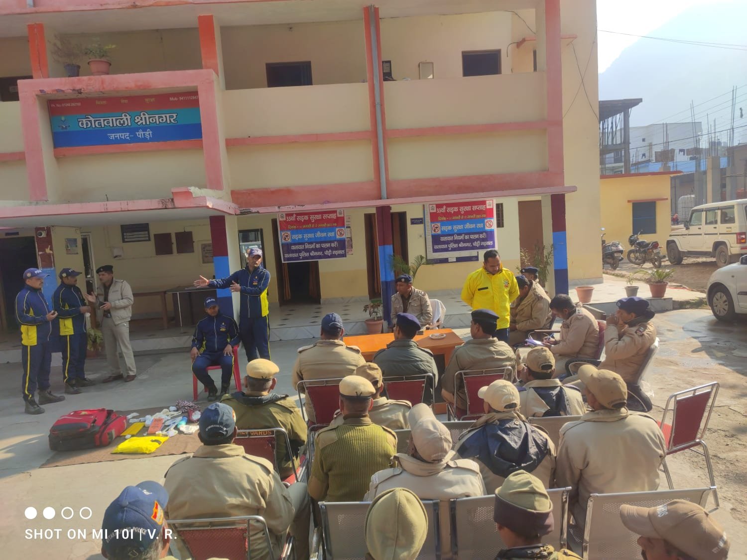 कोटद्वार। वर्तमान समय में वाहन चालकों द्वारा लापरवाही, ओवर स्पीड़, ओवर टेक एवं शराब पीकर वाहन चलाने आदि के कारण बढ़ती हुई सड़क दुर्घटनाओं से कई बार घायल व्यक्ति को प्राथमिक उपचार समय से न मिलने के कारण मौके पर ही मौत हो जाती है। आम जनमानस को यातायात नियमों के प्रति जागरूक करने के लिए वरिष्ठ पुलिस अधीक्षक पौड़ी श्वेता चौबे के निर्देशन में शुक्रवार को सड़क सुरक्षा सुरक्षा के तीसरे दिन कोटद्वार में यातायात निरीक्षक शिव कुमार एवं एसडीआरएफ टीम ने राजकीय इण्टर कॉलेज कोटद्वार में एनसीसी कैडेटों को सड़क दुर्घटना में प्राथमिक उपचार के दौरान क्या करें, क्या न करें? वैकल्पिक स्ट्रेचर बनाना, विक्टिम मूविंग एंड लिफ्टिंग, स्पलिंट बांधना, रक्तस्राव रोकने के तरीके, सी.पी.आर, रोप रेस्क्यू आदि के सम्बन्ध में विस्तारपूर्वक जानकारी दी गयी। साथ ही पुलिस द्वारा एनसीसी कैडेटों को यातायात पुलिस कार्टून जागरूकता बुक भी वितरित की गयी ।