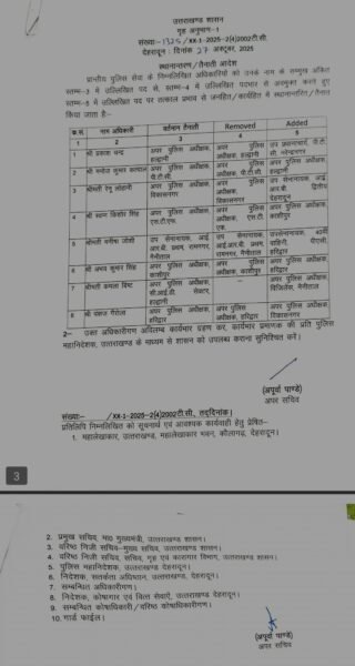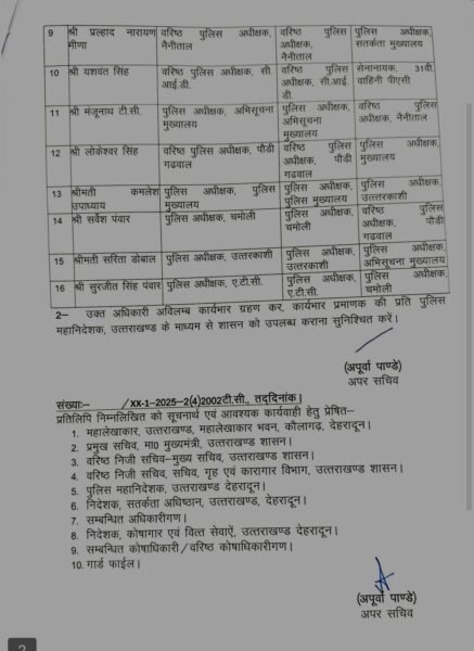 UTTARAKHAND BREAKING: कई IPS और PPS अधिकारियों के ट्रांसफर, यहां देखें पूरी लिस्ट by October 27, 2025 written by October 27, 2025 Share 0FacebookTwitterPinterestWhatsapp देहरादून: शासन ने पुलिस महकमे में बड़ा फेरबदल किया है। IPS और PPS अधिकारियों के ट्रांसफर किए हैं। Share 0 FacebookTwitterPinterestWhatsapp