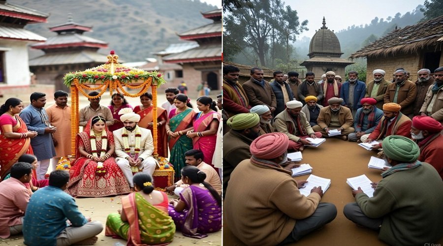 विकासनगर : उत्तराखंड के ग्रामीण क्षेत्रों में शादी-विवाह और अन्य आयोजनों में बढ़ती फिजूलखर्ची पर रोक लगाने के लिए एक अनूठा कदम उठाया गया है। खत शिलगांव के पंचरा-भंजरा स्थित महासू देवता मंदिर में ग्रामीणों की बैठक हुई, जिसमें सर्वसम्मति से कई सख्त नियम लागू करने का निर्णय लिया गया।