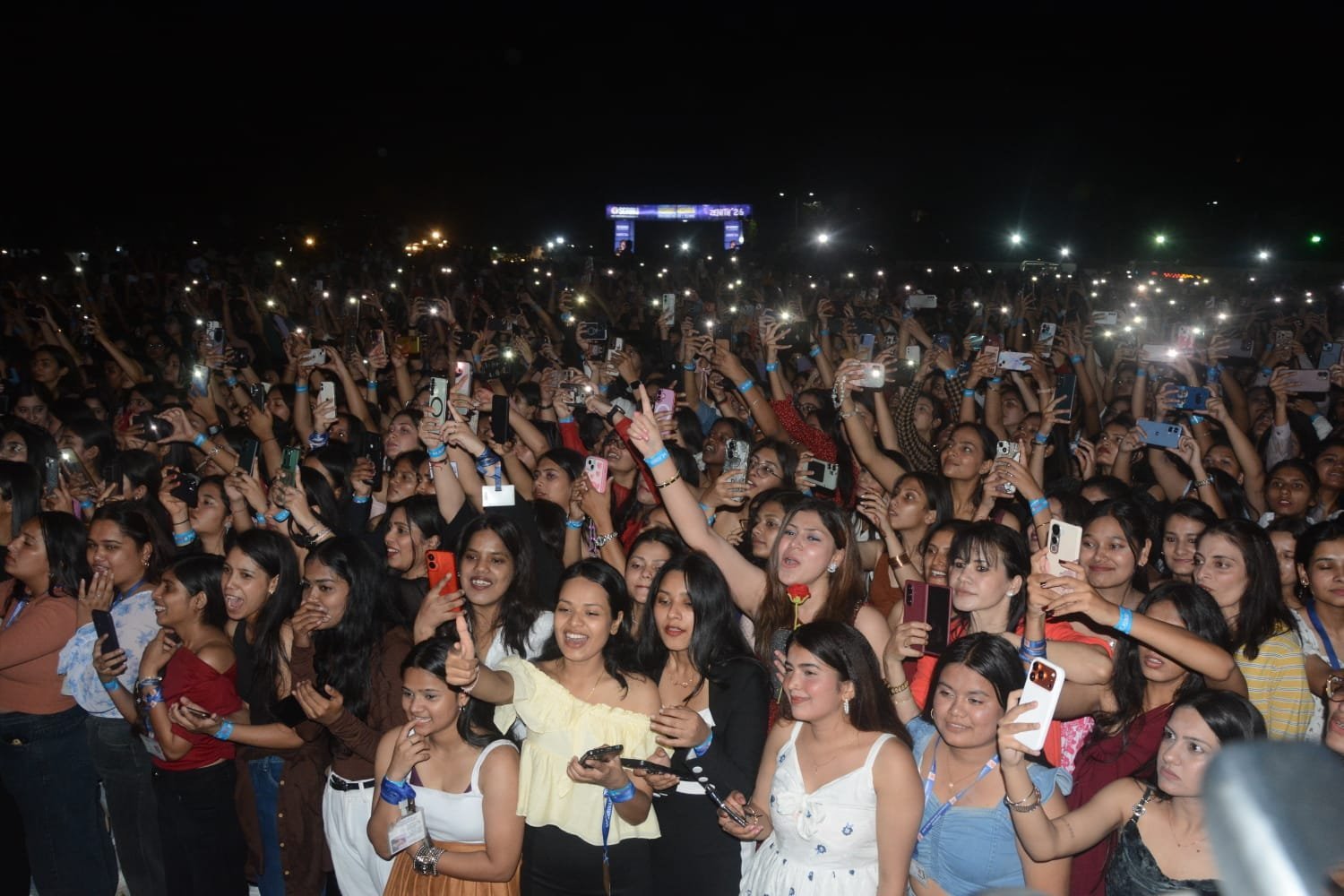 बालीवुड गायक विशाल मिश्रा के सुरों से सजी स्टार नाइट में रोमांस का ऐसा जादू छाया कि पूरा माहौल रोमांटिक हो उठा। अपनी भावपूर्ण आवाज और दिल को छू लेने वाली प्रस्तुति के लिए मशहूर विशाल मिश्रा ने स्टेज पर एक के बाद एक कई शानदार परफॉर्मेंस देकर दर्शकों को मंत्रमुग्ध कर दिया। “पहले भी मैं”, “कैसे हुआ”, “जानिये”, “तेरी हो गईयां”, “दिल झूम”, “जिआल ए मिस्किन”, “चल तेरे इश्क में”, “मांझा” और “क्या बताऊं तुझे” जैसे सुपरहिट लव सॉन्ग्स की प्रस्तुति ने खासतौर पर युवाओं और कपल्स के दिलों में अलग ही उत्साह भर दिया। जेनजी जनरेशन की भावनाओं, उनके प्यार के अंदाज और आधुनिक रिश्तों की नजाकत को बखूबी दर्शाते हुए विशाल मिश्रा ने अपनी गायकी से हर दिल को जोड़ दिया। उनकी हर प्रस्तुति पर दर्शक झूम उठे और मोबाइल फ्लैशलाइट्स के बीच बना रोमांटिक माहौल देर रात तक यादगार बना रहा।