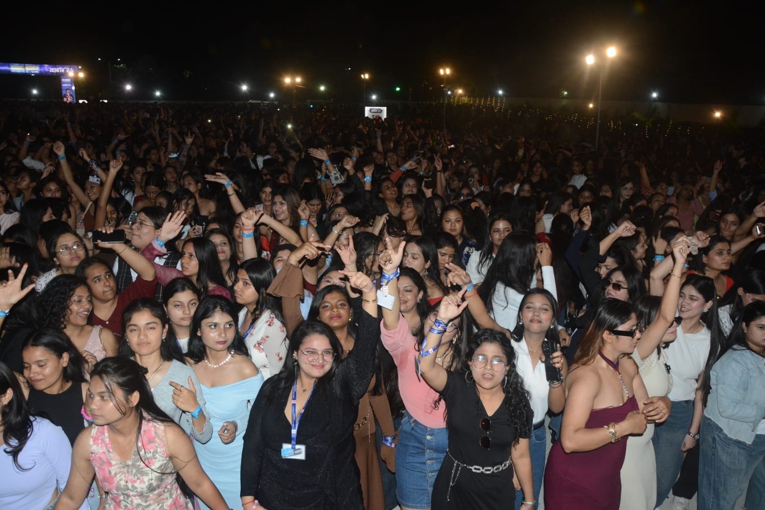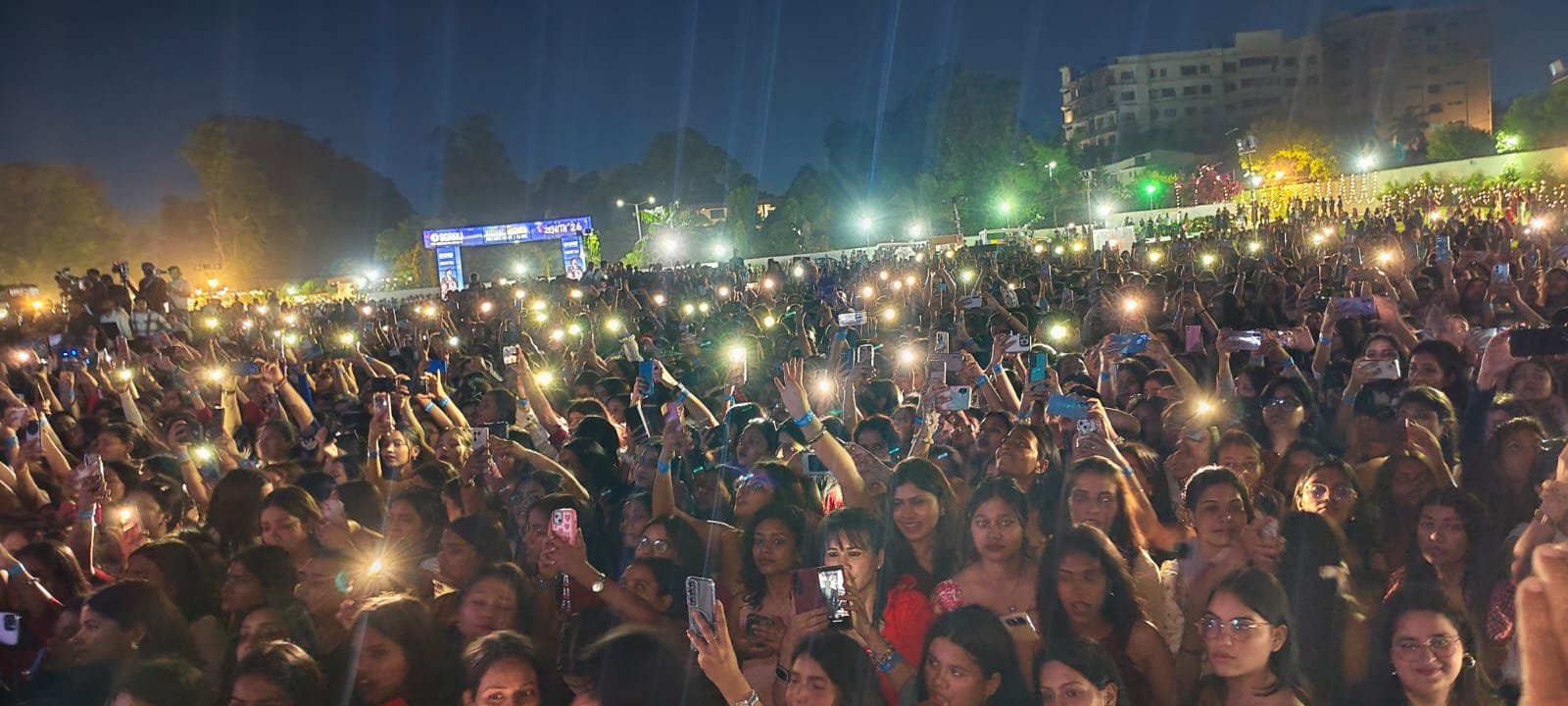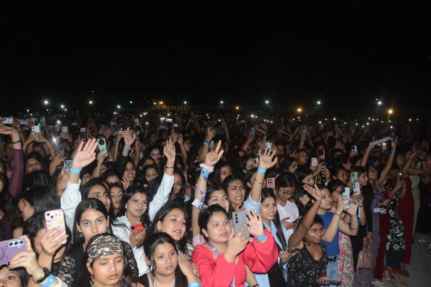 मंगलवार को पथरी बाग स्थित एसजीआरआर विश्वविद्यालय के हेलीपैड ग्राउंड पर हाई वोल्टेज साउंड और शानदार लाइटिंग के बीच विशाल मिश्रा के सुप्रसिद्ध बॉलीवुड गीतों की गूंज ने हजारों दर्शकों को झूमने पर मजबूर कर दिया। दो दिवसीय वार्षिक सांस्कृतिक महोत्सव के अंतिम दिन लव सॉन्ग्स की खास धूम रही, जिसने खासकर युवा वर्ग में जबरदस्त उत्साह भर दिया। हज़ारों की संख्या में उपस्थित विश्वविद्यालय के छात्र-छात्राओं ने विशाल मिश्रा कॉन्सर्ट का भरपूर लुत्फ उठाया।