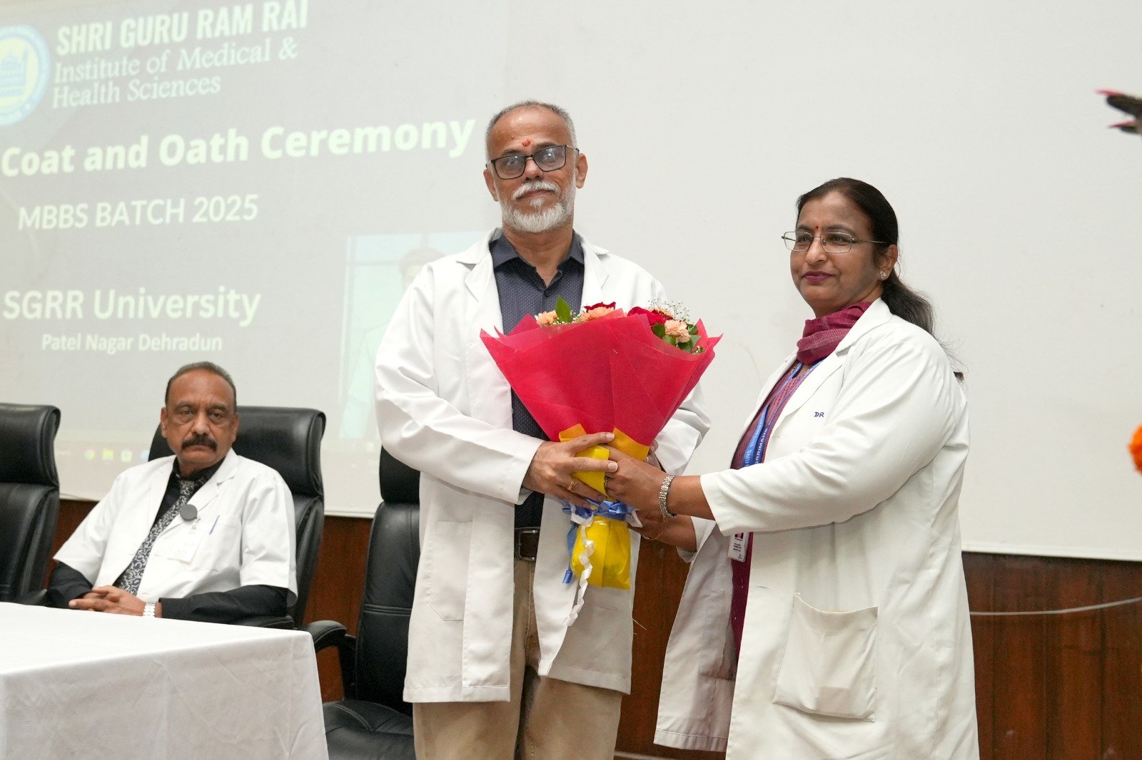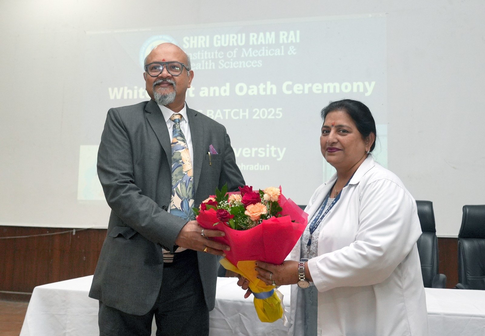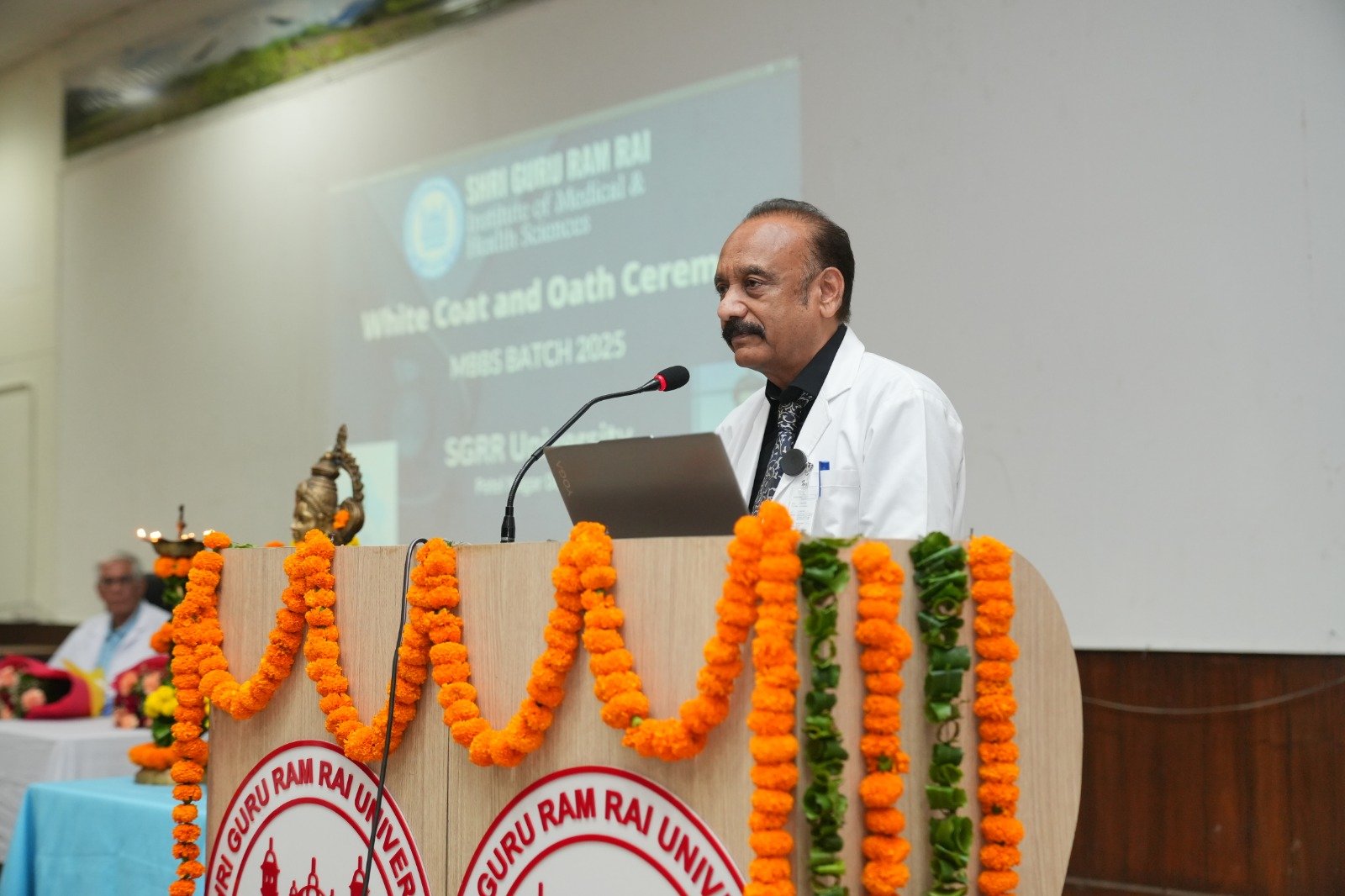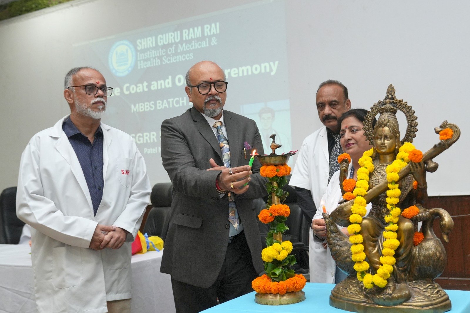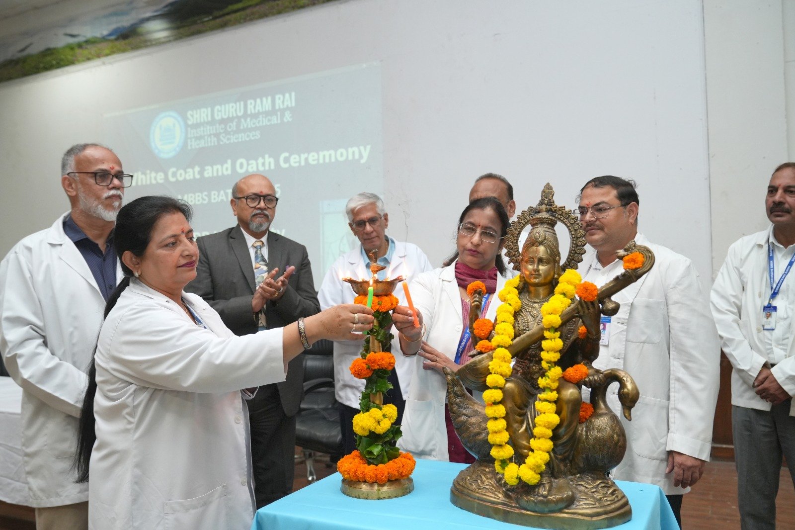 देहरादून। श्री गुरु राम राय राय इंस्टीट्यूट ऑफ मेडिकल एण्ड हैल्थ साइंसेज के नव आगुंतक (फ्रैशर) छात्र-छात्राओं की वाईट कोट सैरेमनी व चरक शपथ सम्पन्न हुई। एसजीआरआरआईएमएण्ड एचएस के सभागार में एमबीबीएस-वर्ष 2025 बैच के नव आगुंतक (फ्रैशर) छात्र-छात्राओं की वाईट कोट सैरेमनी व चरक शपथ श्री गुरु राम राय विश्वविद्यालय के वाईस चान्सलर इन्चार्ज एवं माननीय प्रेसिडे़ंट के सलाहकार प्रो.डॉ. प्रथप्पन के पिल्लई, एचजीआरआरआईएमएण्डएचएस के निदेशक डॉ. मनोज कुमार गुप्ता, प्राचार्य डॉ. अशोक नायक व श्री महंत इन्दिरेश अस्पताल के मुख्य चिकित्साधीक्षक डॉ. कर्नल अनिल मलिक द्वारा सम्पन्न करवाई गई। कार्यक्रम का शुभारंभ मुख्य अतिथि श्री गुरु राम राय विश्वविद्यालय के वाईस चान्सलर इन्चार्ज एवं माननीय प्रेसिडे़ंट के सलाहकार प्रो.डॉ. प्रथप्पन के पिल्लई, निदेशक डॉ. मनोज कुमार गुप्ता, प्राचार्य डॉ. अशोक नायक व श्री महंत इन्दिरेश अस्पताल के मुख्य चिकित्साधीक्षक डॉ. कर्नल अनिल मलिक द्वारा दीप प्रज्जवलित कर किया गया।