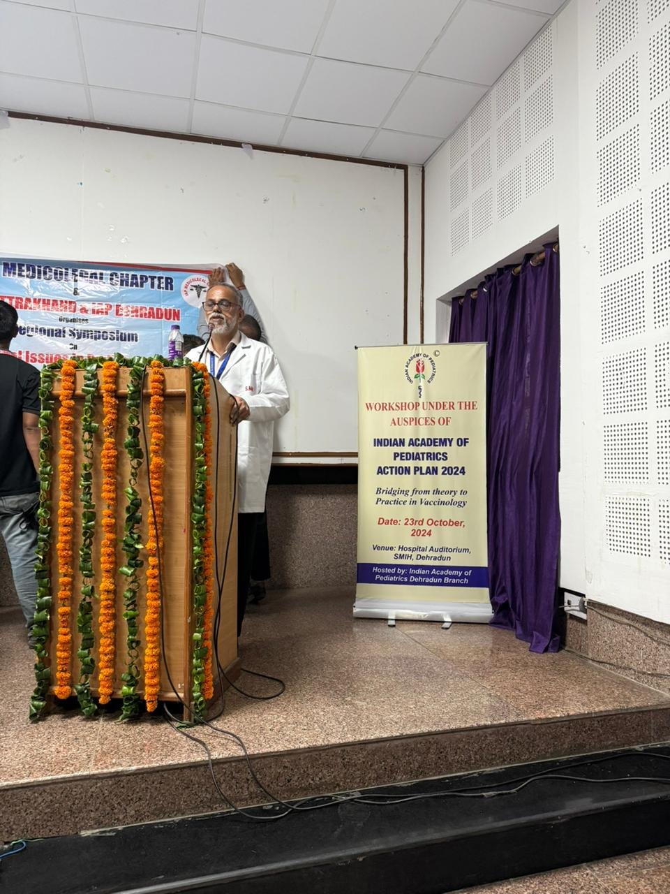 उपाध्यक्ष, आई.ए.पी.( इंडियन एकेडमी ऑफ पीडियाट्रिक्स) उत्तरी जोन, डाॅ. सतीश शर्मा ने कोल्ड चेन विषय पर प्रकाश डाला। उन्होने विभिन्न टीकों को कैसे संग्रहित किया जाए और अनुकूल तापमान कैसे बनाए रखा जाए इसके बारे में विस्तार से बताया। वरिष्ठ शिशु एवं बाल रोग विशेषज्ञ, चिरंजीव अस्पताल, रूड़की, डाॅ. सुधीर चौधरी  ने अपने विषय टीकाकरण के बाद पेश आने वाली प्रतिकूल घटनाएं (साईड इेफैक्टस), ए.इ.एफ.आई. के बारे में बताया। उन्होंने शिशु एवं बाल रोग विशेषज्ञों को बताया कि विभिन्न टीकाकरण के बाद उभरने वाले दुष्प्रभावों को कैसे नियंत्रित किया जाए।